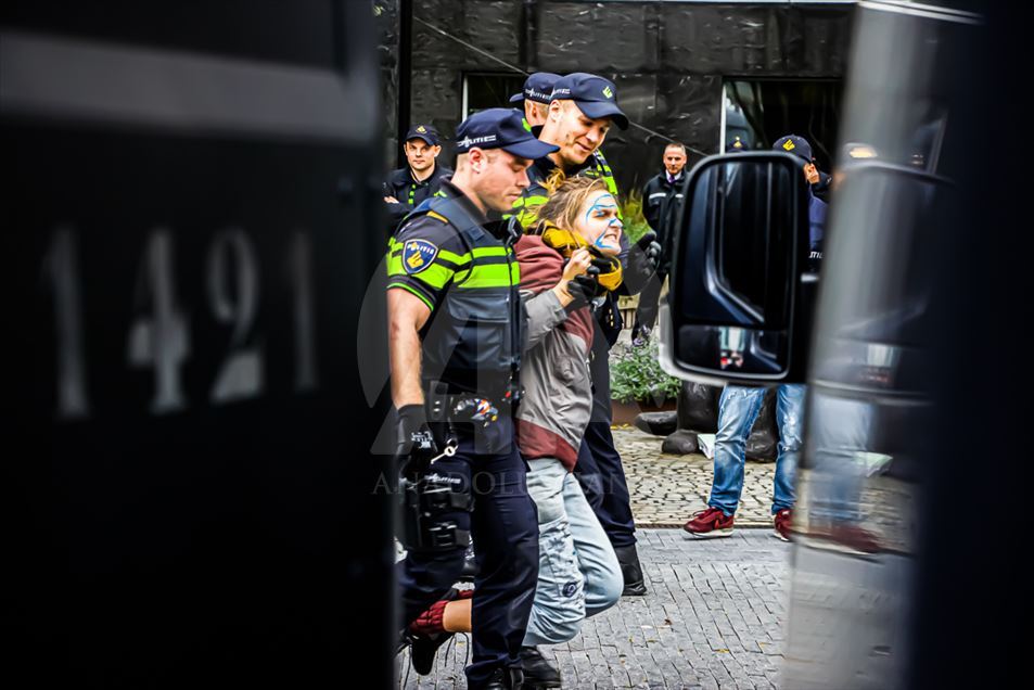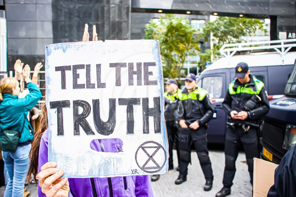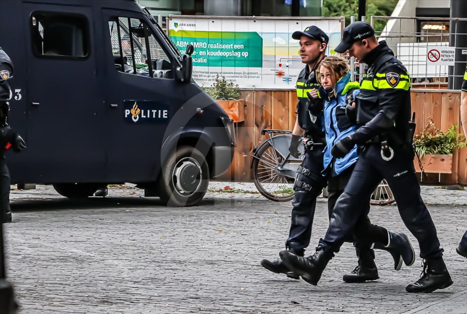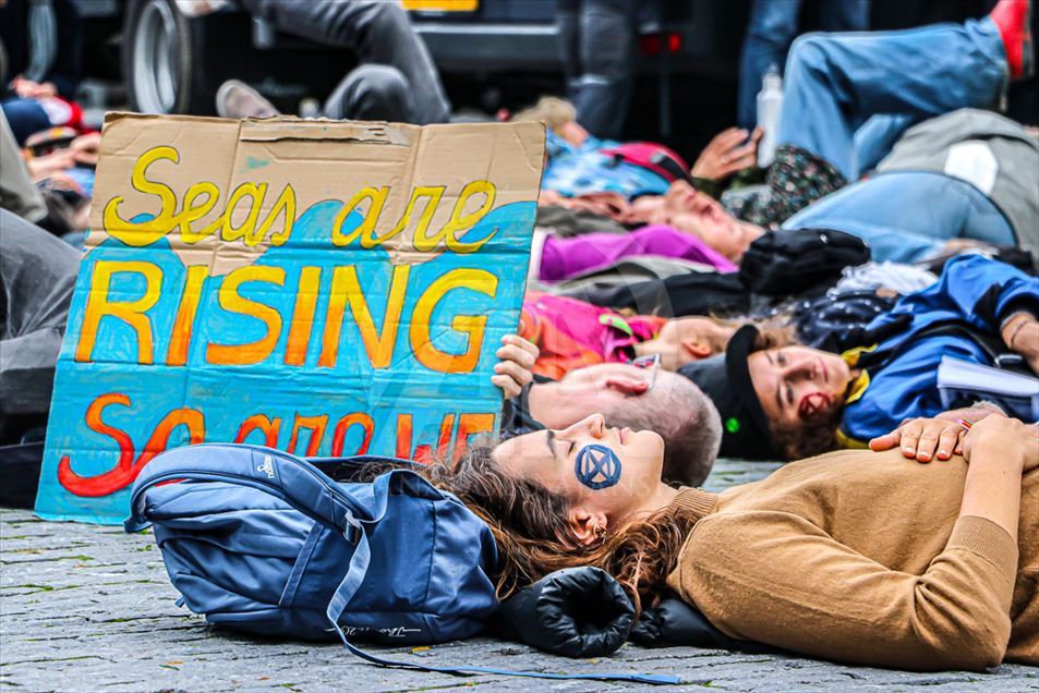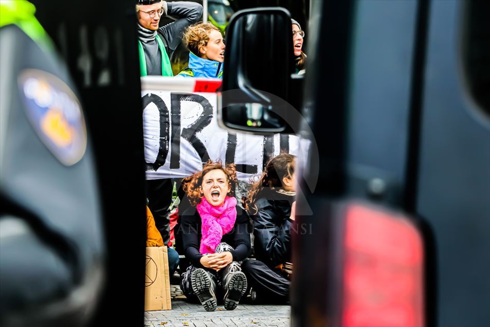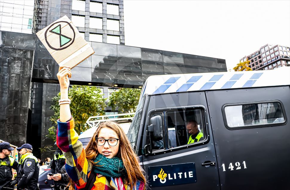 Hollanda'nın başkenti Amsterdam'da, bir bankanın ve enerji şirketinin girişini işgal eden iklim protestocularının eyleminde 40 eylemci gözaltına alındı. "Extinction Rebellion (Yokoluş İsyanı)" adlı grup tarafından düzenlenen eylemde, yüzlerce eylemci bir bankanın merkez binasının ana girişini işgal etti. ( Abdullah Aşıran - Anadolu Ajansı )Abdullah Aşıran