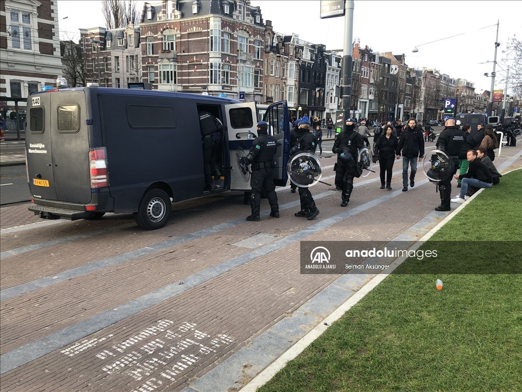 Hollanda hükümetinin Kovid-19 kısıtlamaları ve aşı politikaları Amsterdam Belediyesi'nin yasaklamasına rağmen yüzlerce kişi tarafından protesto edildi.