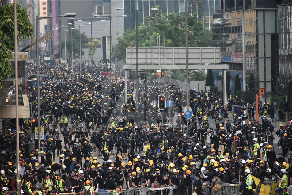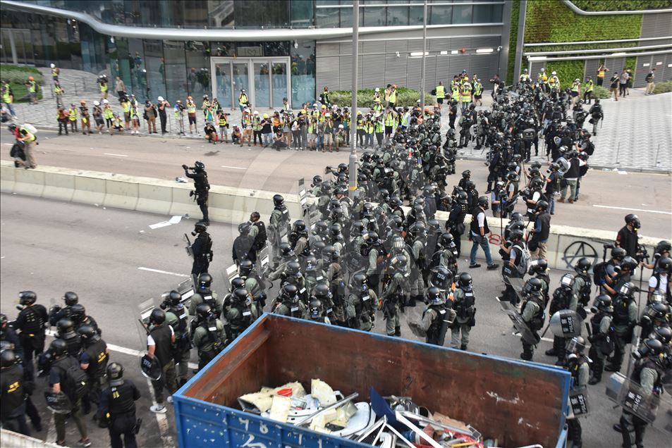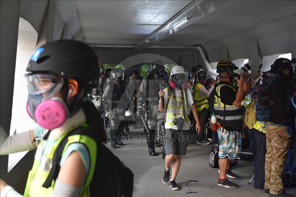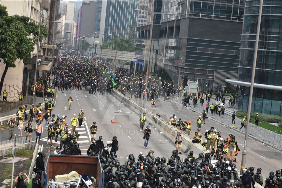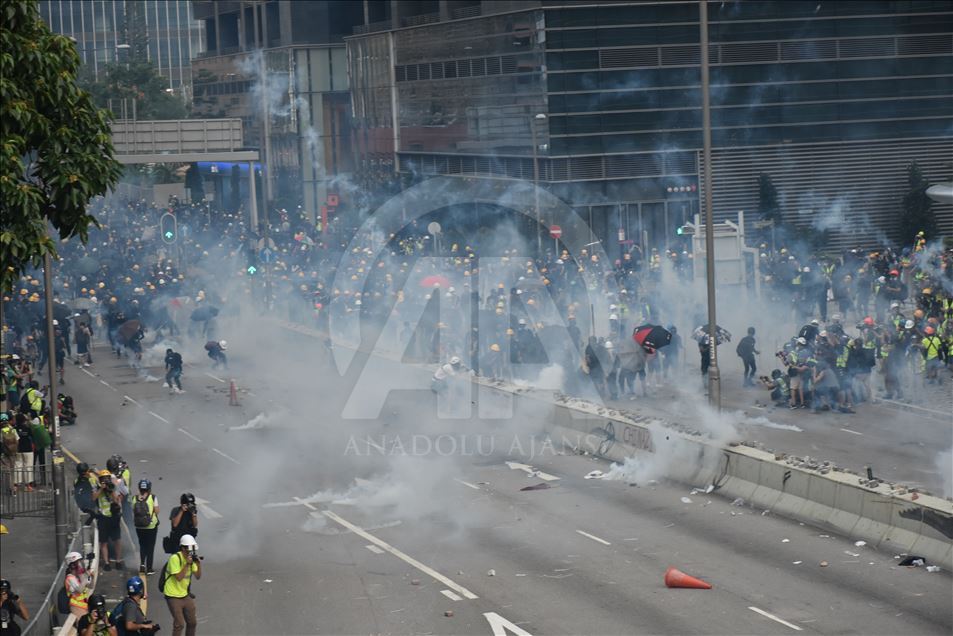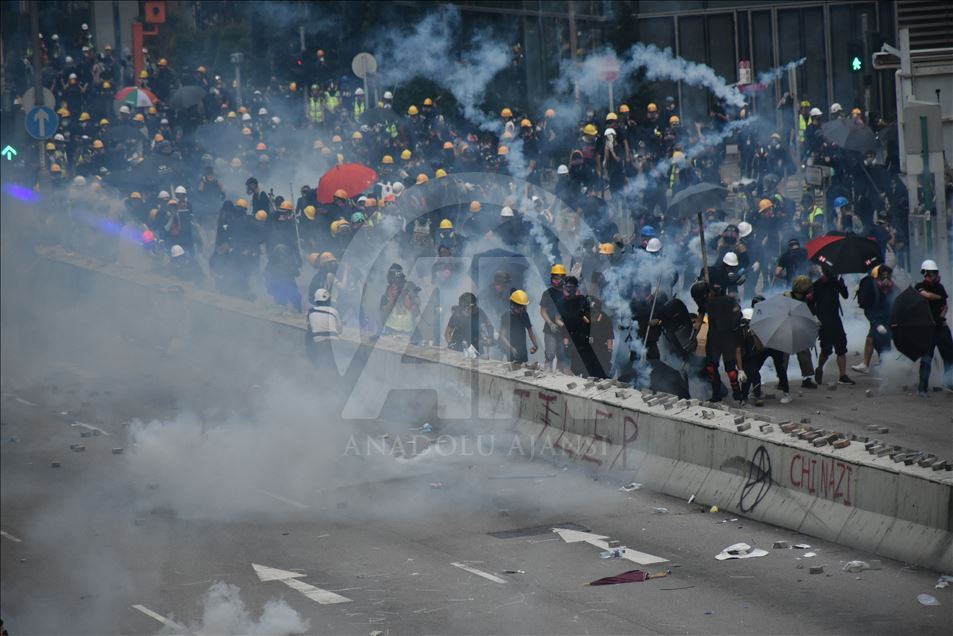 Çin'in Hong Kong Özel İdari Bölgesi'nde suçluların Çin'e iadesi tasarını protesto eden göstericilere polis göz yaşartıcı gazla müdahalede bulundu.