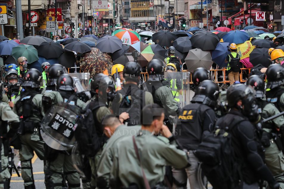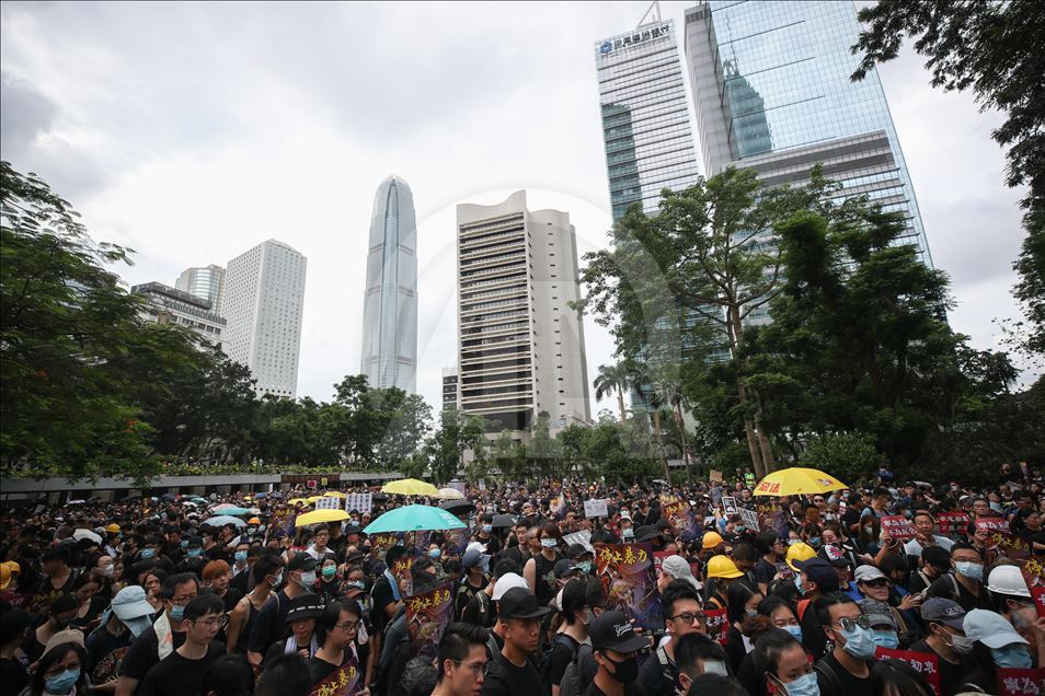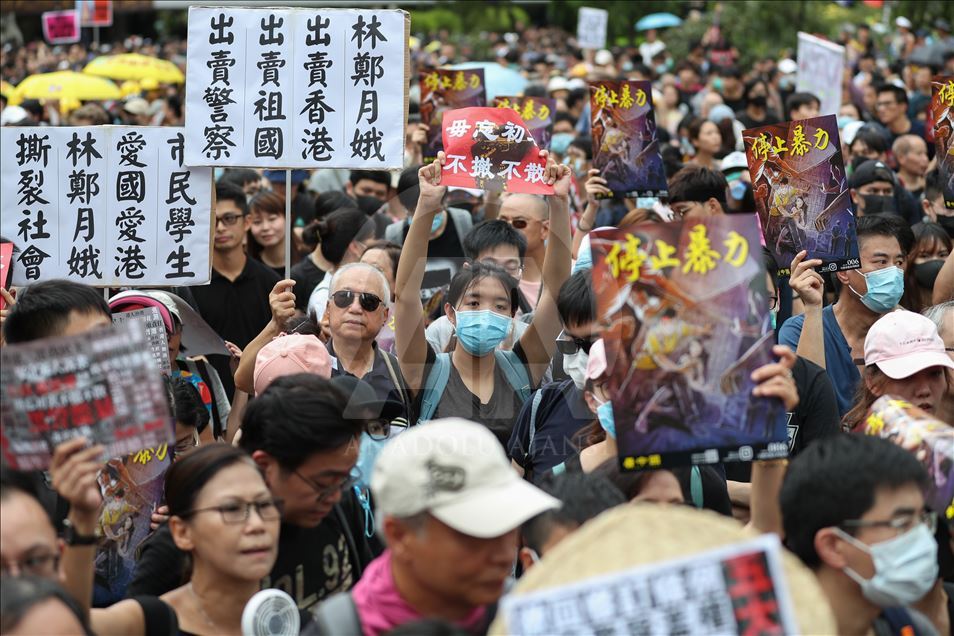 Çin'e iade yasa tasarısına karşı protestoların sürdüğü Çin'in Hong Kong Özel İdari Bölgesi'nde, binlerce siyah giyinmiş protestocu, geçen hafta sonu yüzleri maskeli, beyaz kıyafetli onlarca kişinin göstericileri darbettiği metro istasyonunun bulunduğu Yuan Long bölgesinde toplandı. Bazıları şemsiye taşıyan, bazıları maske takan protestocular, Yuan Long metro istasyonu saldırısında polisin müdahale etmekte gecikmesine ve protestolara göz yaşartıcı gazla müdahale etmesine tepki gösterdi.