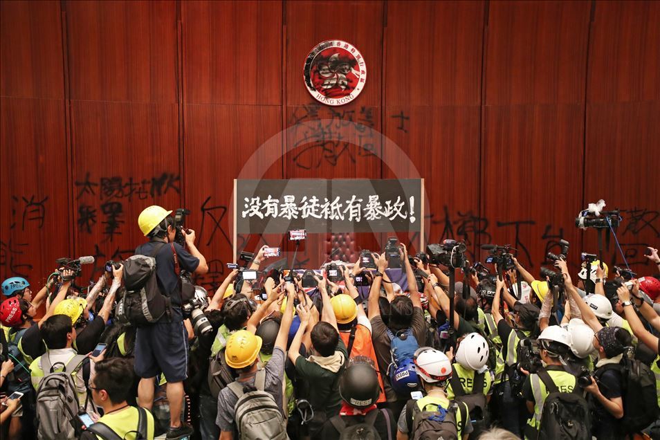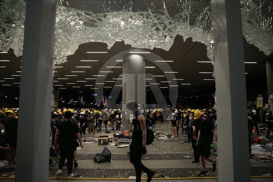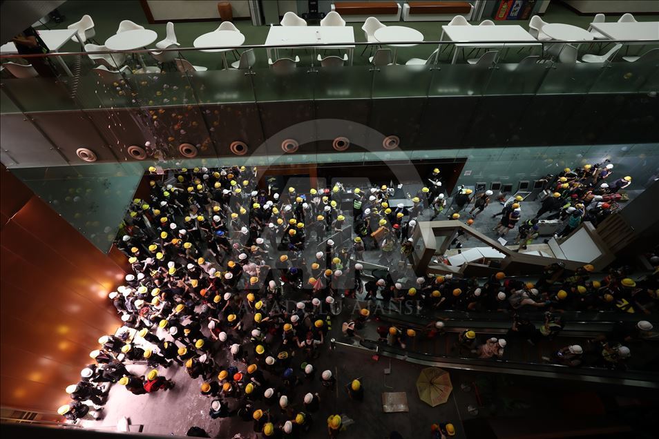 Çin'in Hong Kong idari bölgesinde zanlıların Çin'e iadesini kolaylaştıran yasal düzenlemelere tepki gösteren protestocular meclisi bastı.