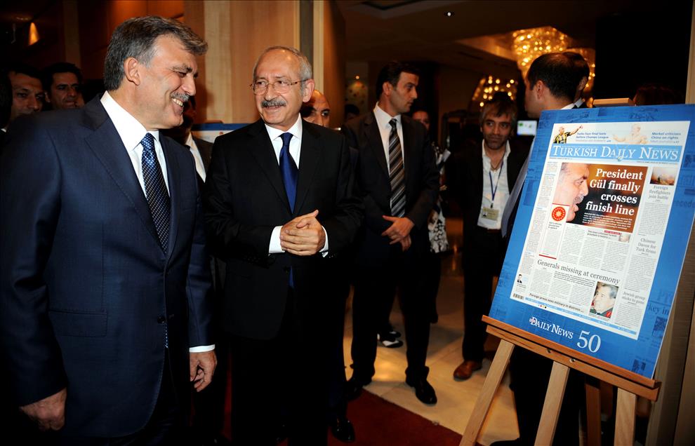 HURRIYET DAILY NEWS'IN RIXOS OTELDE DUZENLENEN 50. YIL RESEPSIYONUNA CUMHURBASKANI ABDULLAH GUL VE CHP GENEL BASKANI KEMAL KILICDAROGLU KATILDI. (ANADOLU AJANSI - DILEK MERMER) (20111026)DILEK MERMER