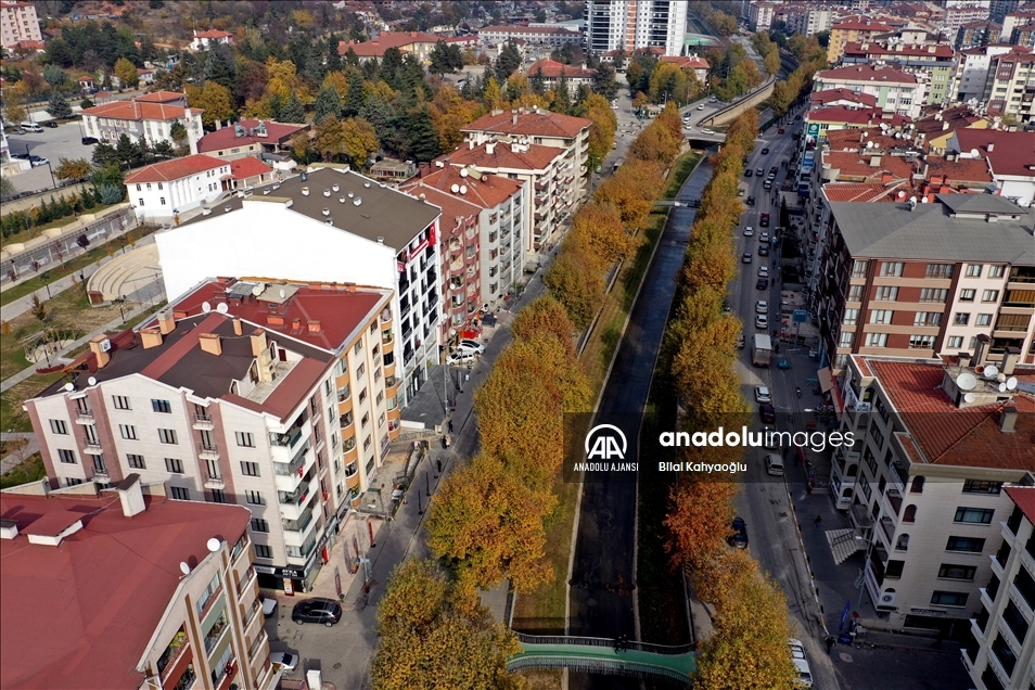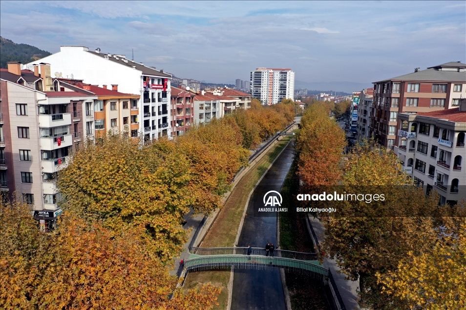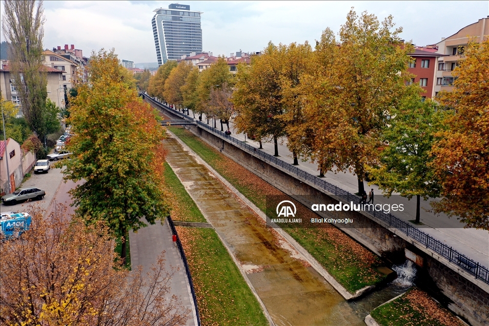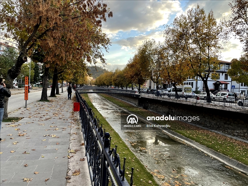 Kastamonu'da şehrin ortasından geçen Karaçomak Deresi boyunca uzanan ağaçlar, kent sakinleri ve ziyaretçilere sonbaharın tüm renklerini görme fırsatı sunuyor.