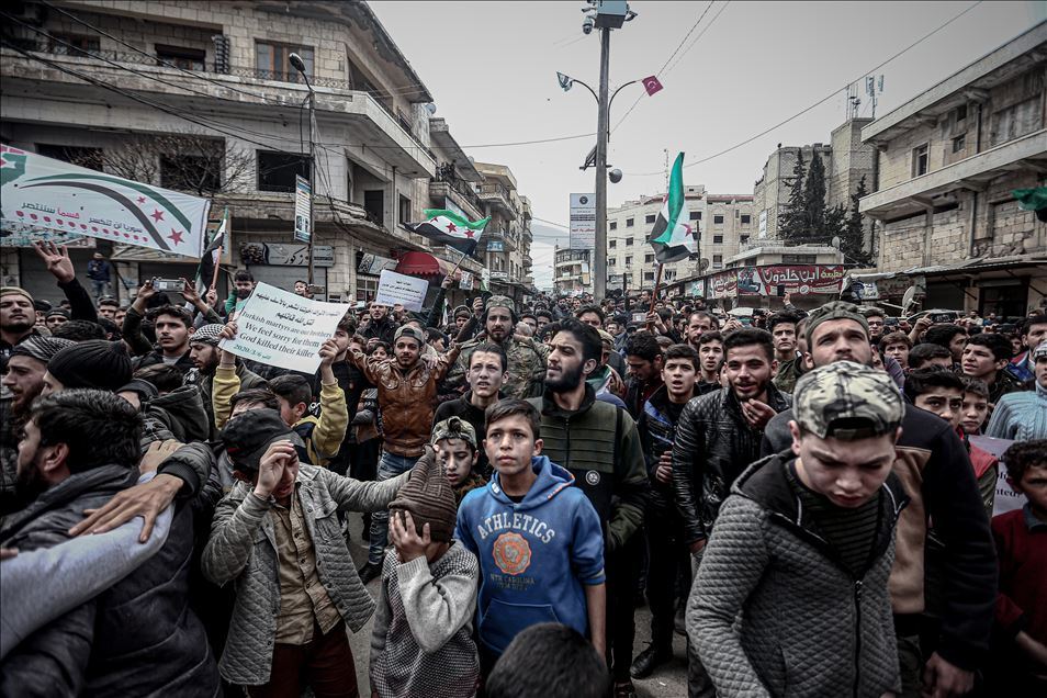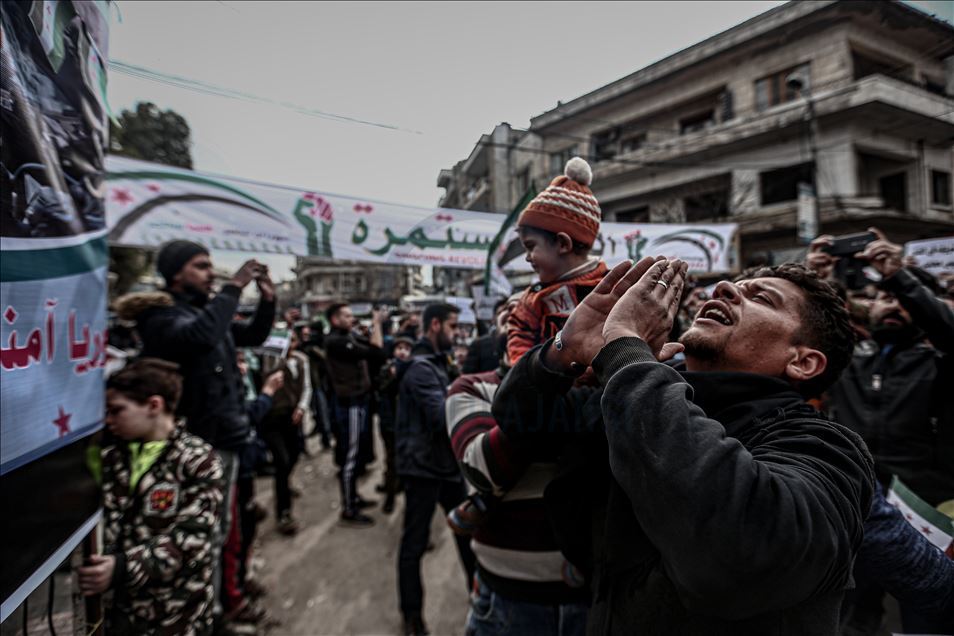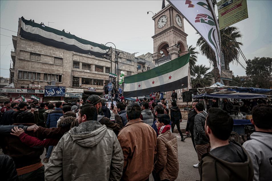 Türkiye ile Rusya arasında İdlib’in istikrara kavuşturulması için varılan mutabakattan sonra kent merkezinde Türkiye’ye destek gösterisi yapıldı. Gösteride meydanın ortasındaki direğe Türk bayrağı ve Suriye devrim bayrağı asıldı. ( Muhammed Said - Anadolu Ajansı )Muhammed Said