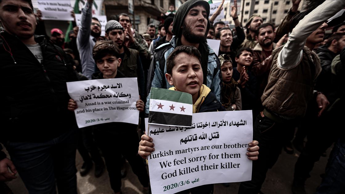 Türkiye ile Rusya arasında İdlib’in istikrara kavuşturulması için varılan mutabakattan sonra kent merkezinde Türkiye’ye destek gösterisi yapıldı.