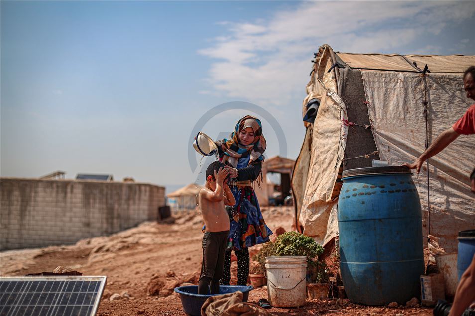 İdlib kamplarındaki siviller, kavurucu sıcaklara mücadele ediyor