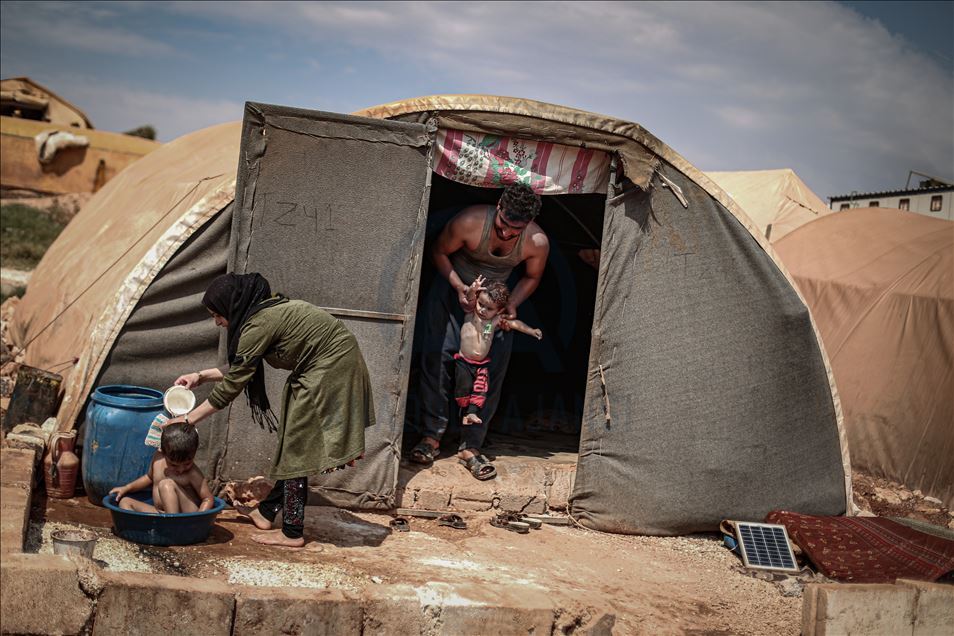Suriye'nin kuzeybatısındaki İdlib ilinde zorla yerinden edilen sivillerin sığındığı kamplardaki siviller, aşırı sıcaklıklarla mücadele ediyor. Gün içinde 43 dereceye kadar çıkan sıcaklık, çoğunluğu kadın ve çocuğun yaşadığı çadırlarda zor anlara neden oluyor. Sıcaklık, güneş ışığına direkt maruz kalan çadırların içinde 50 derecenin üzerine kadar çıkıyor. ( Muhammed Said - Anadolu Ajansı )Muhammed Said