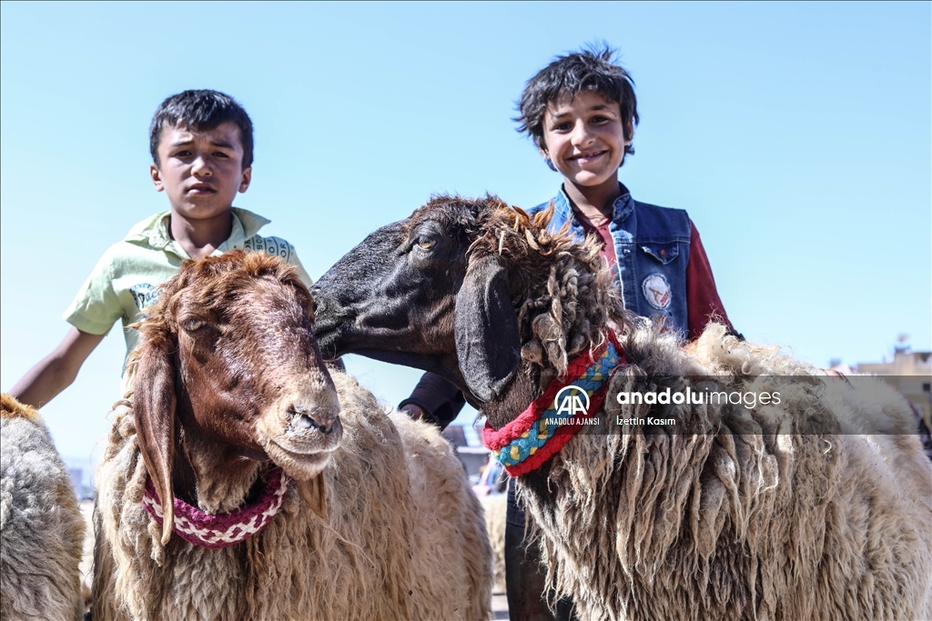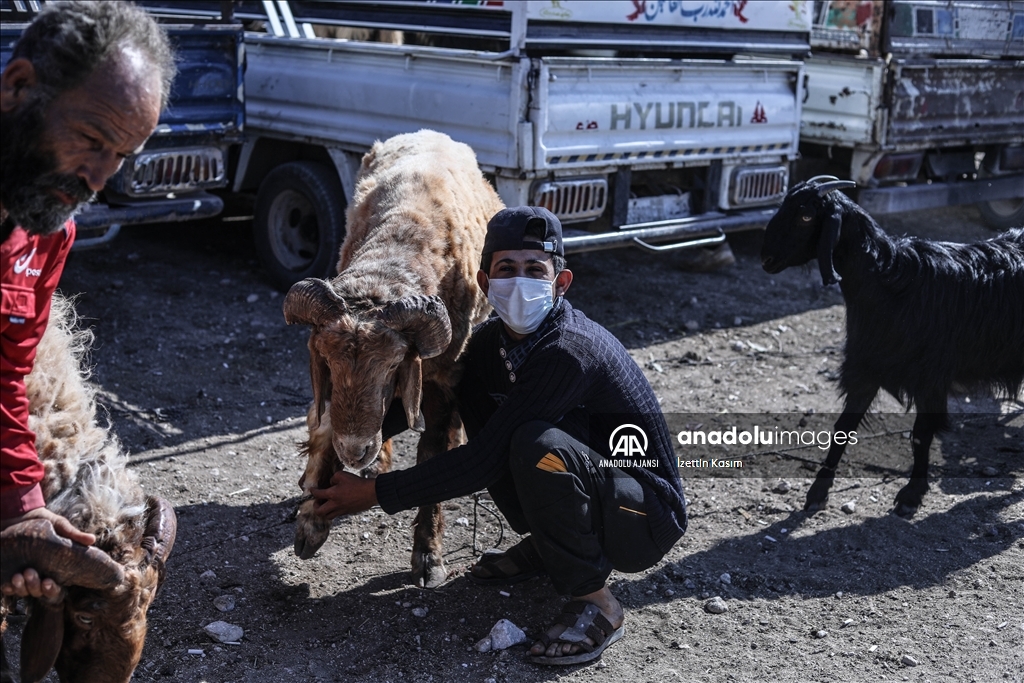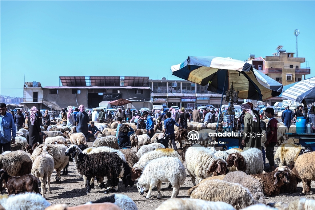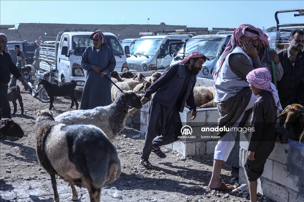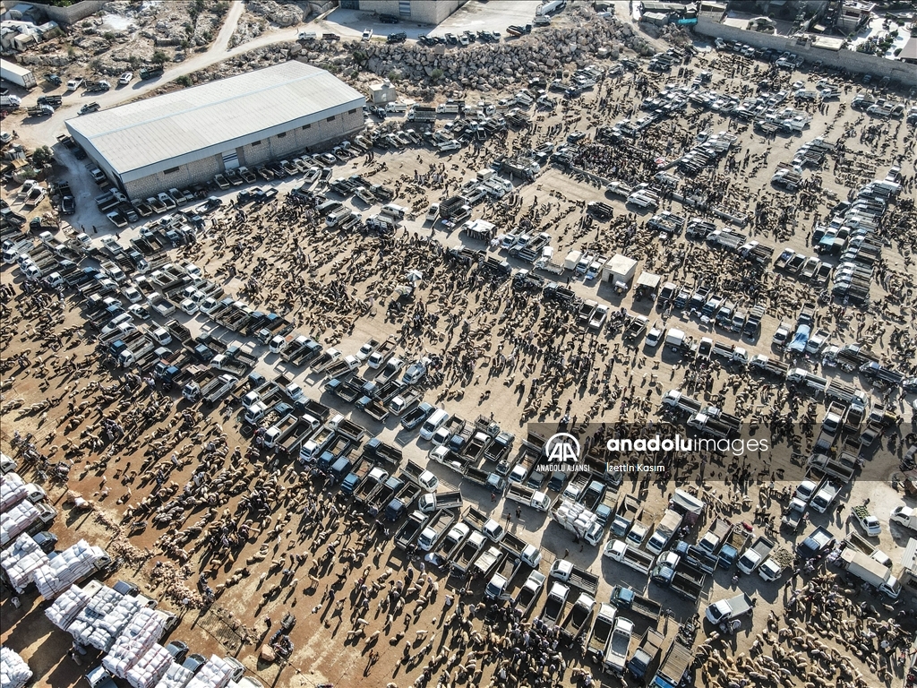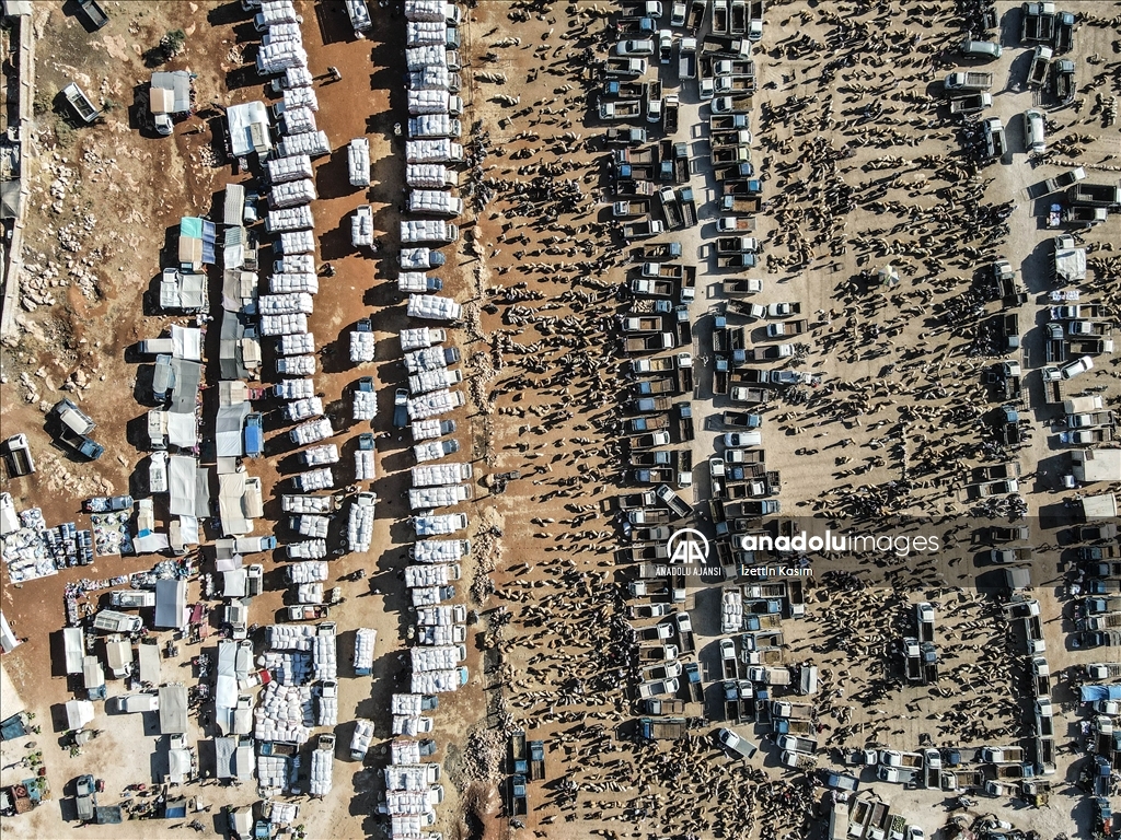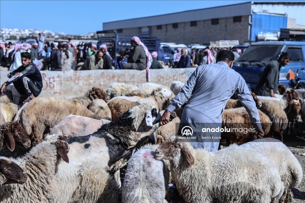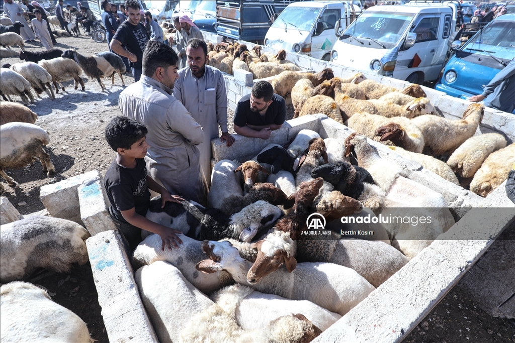 İdlib'de kurulan kurban pazarlarında hareketlilik başladı