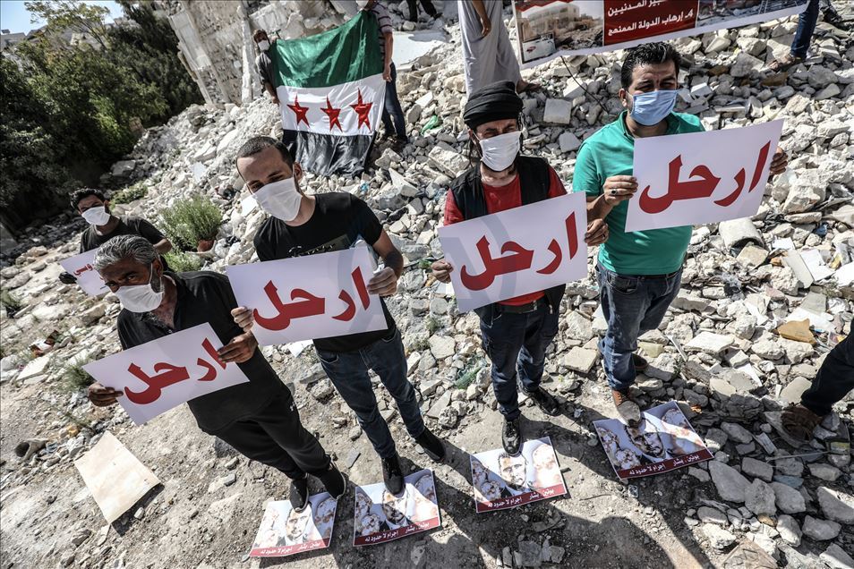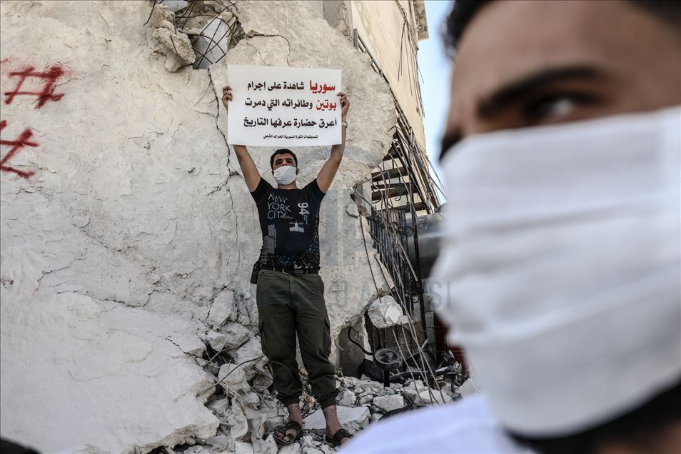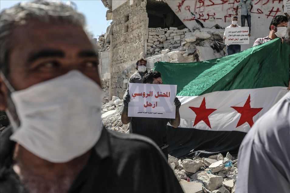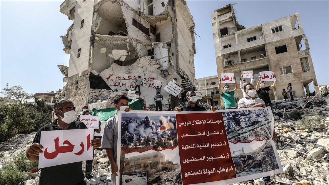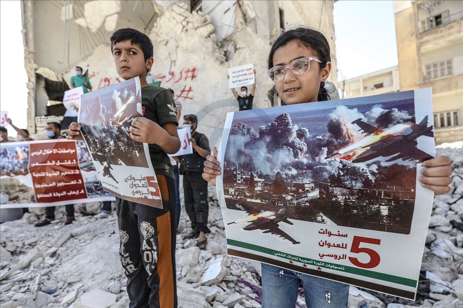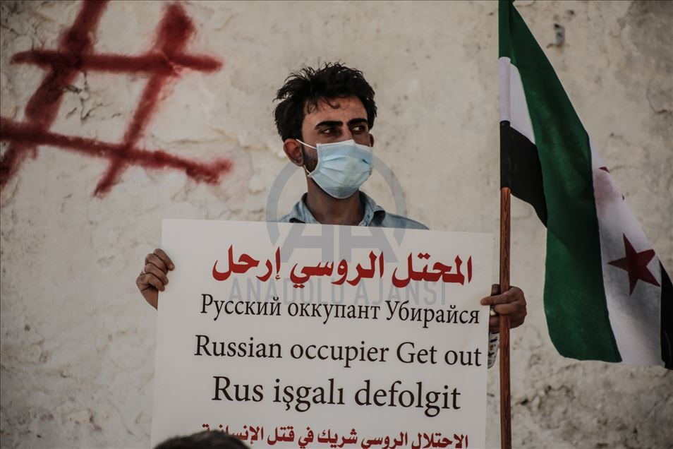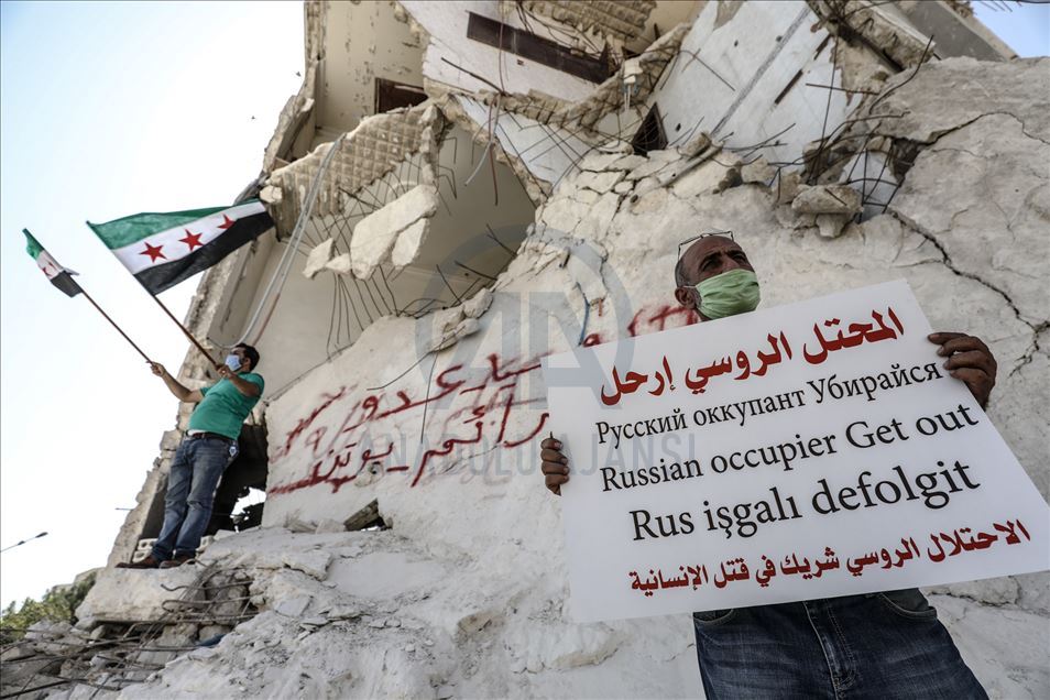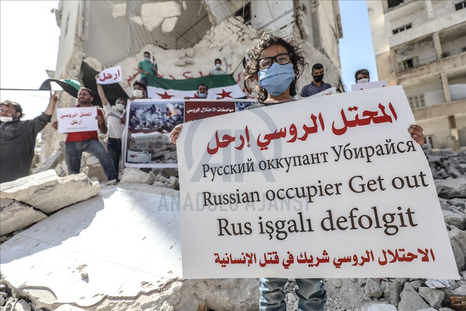 Rusya, Suriye'deki iç savaşa müdahalesinin 6'ncı yılında İdlib'de protesto edildi.İdlib kent merkezinde toplanan çok sayıda kişi, "İşgalci Rusya defol”, "Rusya sivil halkı öldürüyor" yazılı dövizler taşıdı.