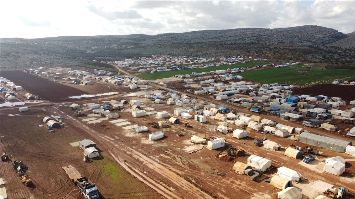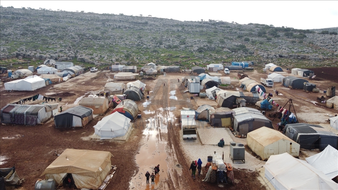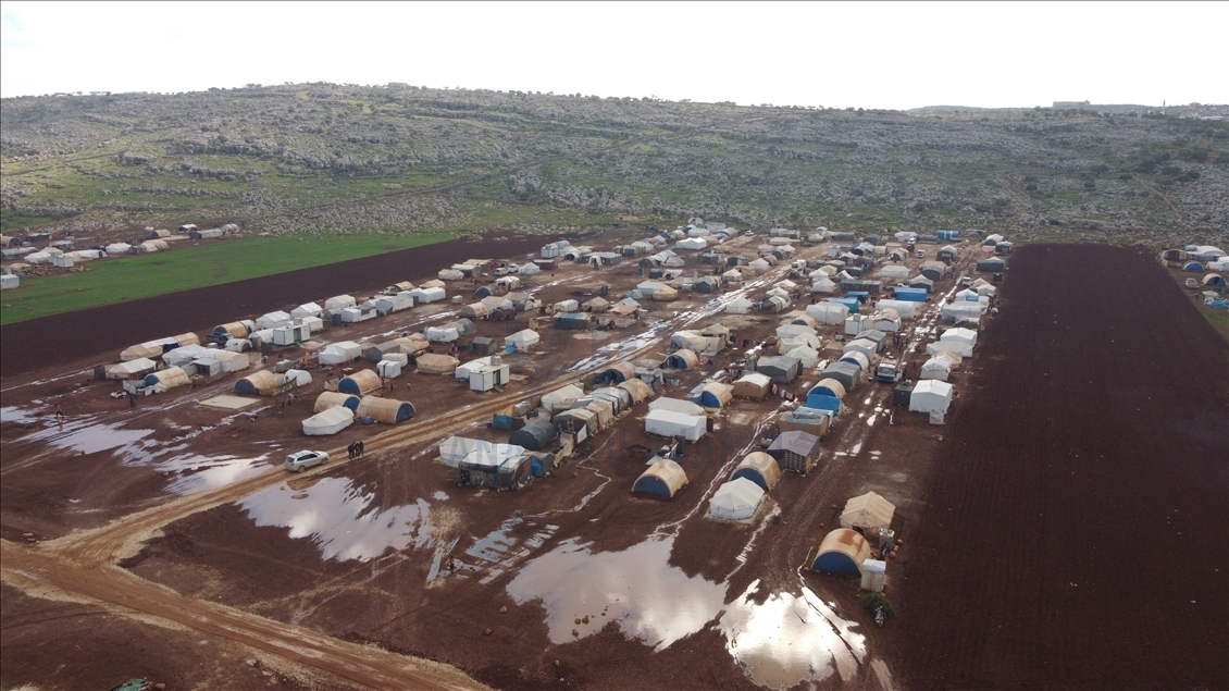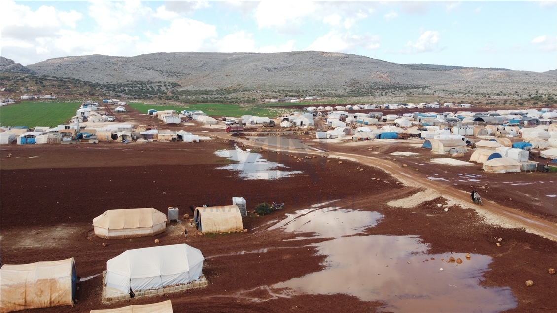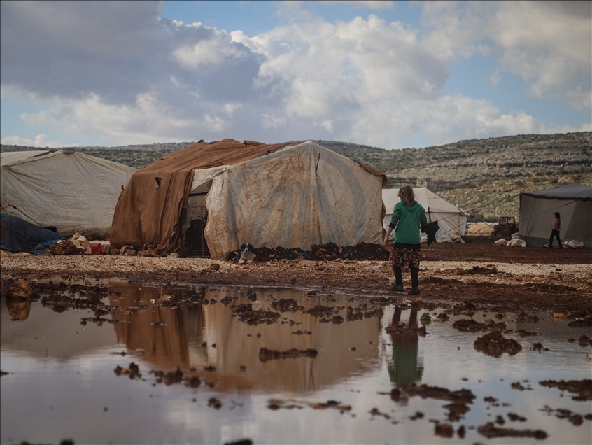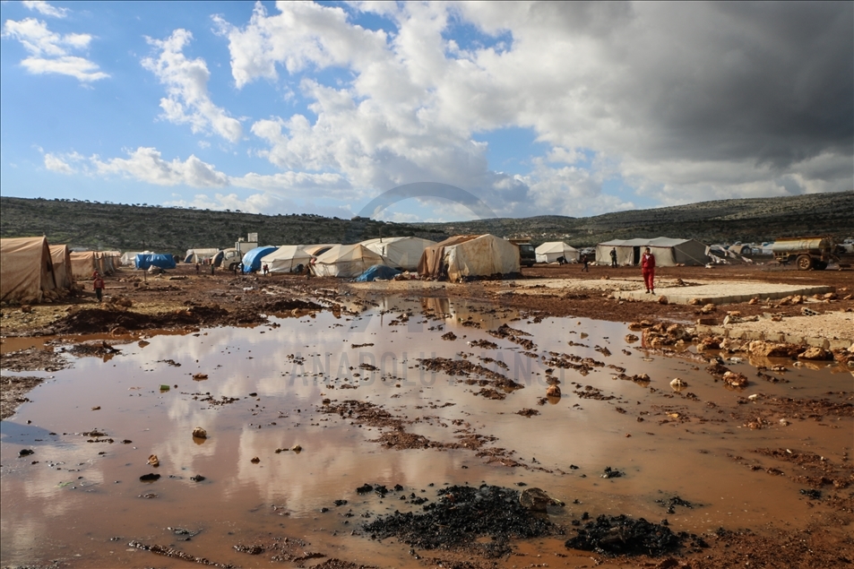 Suriye'nin kuzeybatısındaki İdlib ilinde Beşşar Esed rejimi ve destekçilerinin saldırılarından kaçarak sığındıkları derme çatma çadırlarını sağanak nedeniyle su basan siviller, yaşam mücadelesi veriyor. ( Muhammed Abdullah - Anadolu Ajansı )Muhammed Abdullah