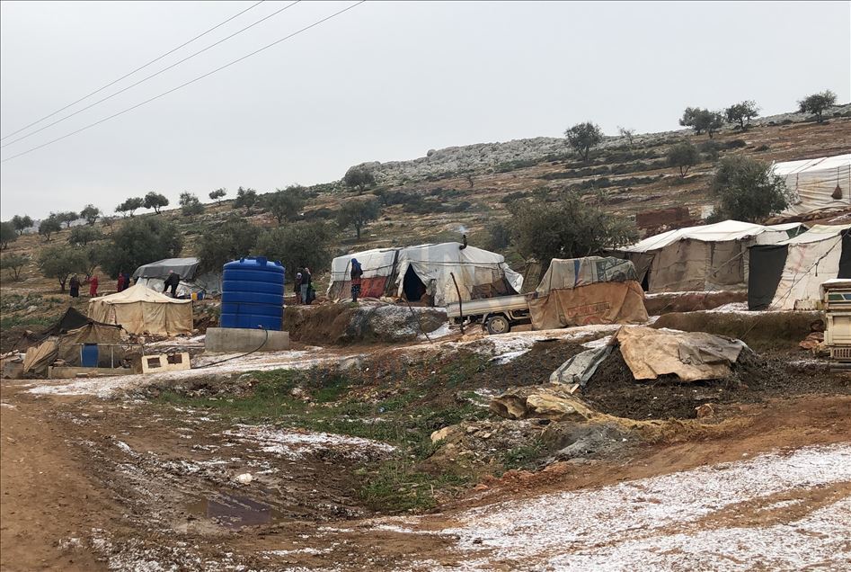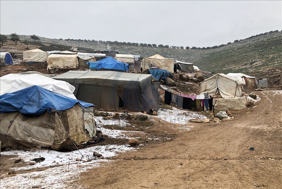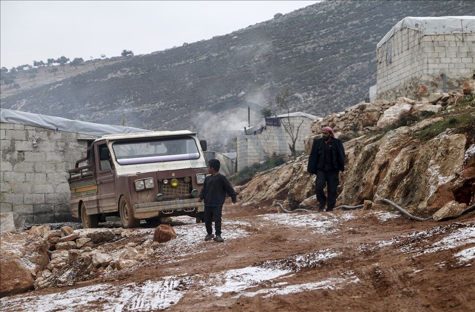 Suriye'de Beşşar Esed rejimi ve destekçilerinin saldırılarından kaçarak İdlib bölgesindeki kamplara sığınan siviller, bir yandan zor kış şartlarında yaşama tutunmaya çalışırken, diğer yandan da evlerine dönmeyi hayal ediyor. Kış aylarının sert geçmesi, sıcaklığın gece saatlerinde sıfırın altına düşmesi ve kısa süreli kar yağışları, İdlib'deki sivillerin yaşam mücadelesini zorlaştırıyor. ( Muhammed Abdullah - Anadolu Ajansı )Muhammed Abdullah