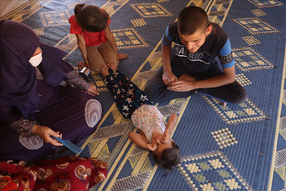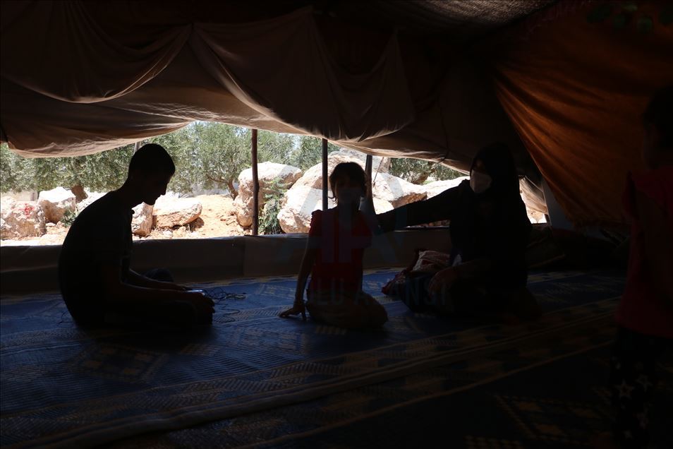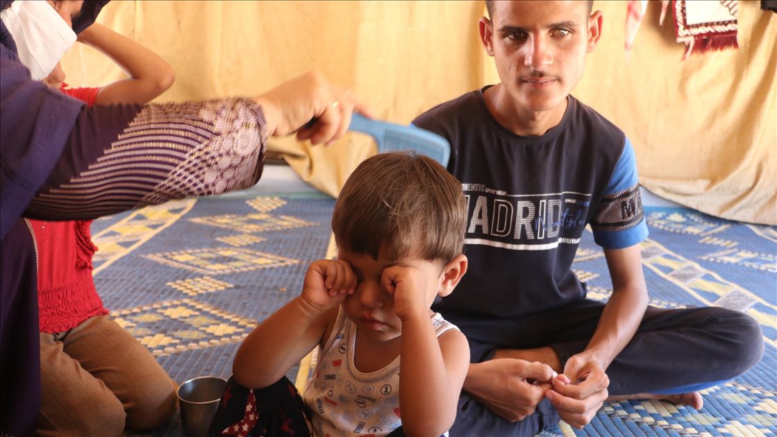 İdlib'deki kampta yaşayan görme engelli beş çocuklu aile yardım bekliyor