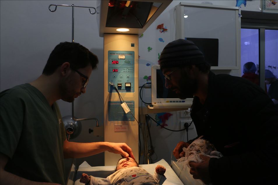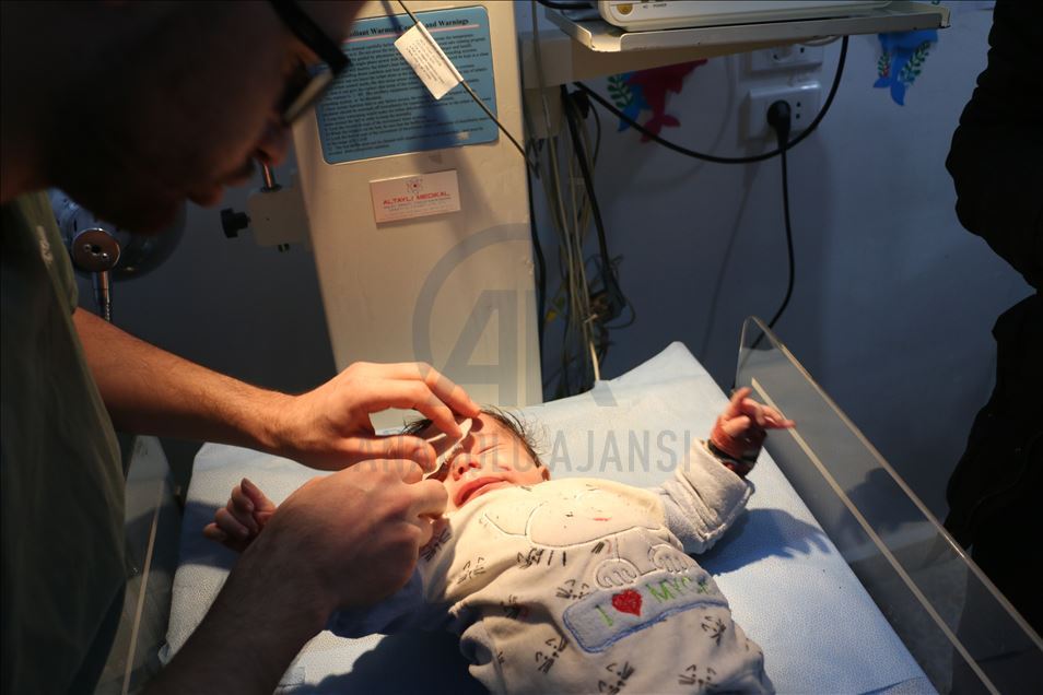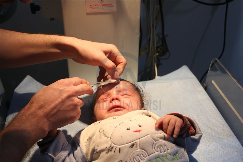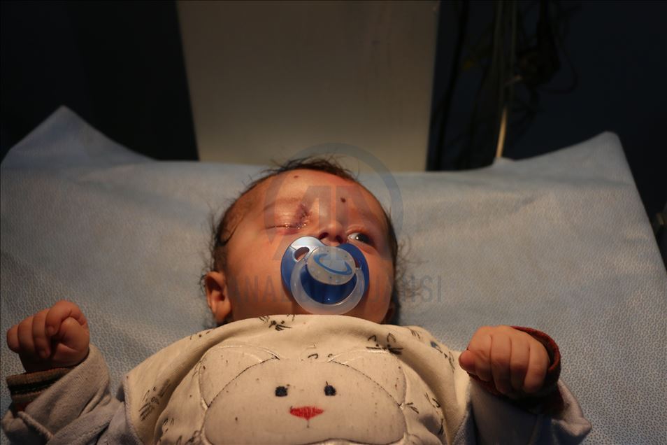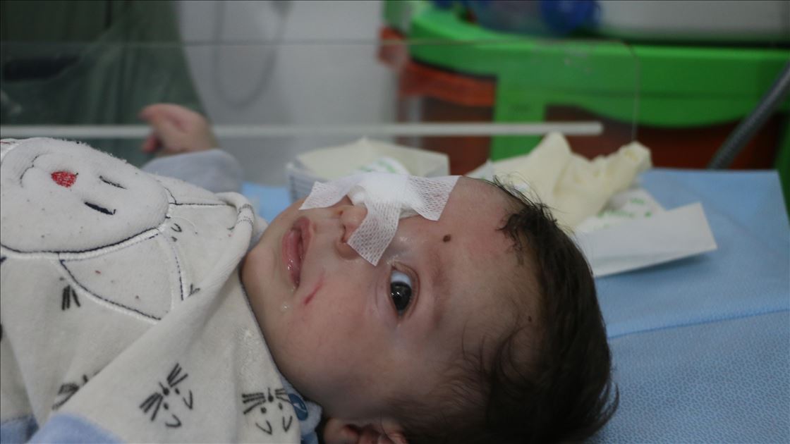 Suriye'nin İdlib kentinde Beşşar Esed rejimi ve İran destekli teröristlerin roket saldırısında hayatı kararan 2 aylık Abdurrahman bebeğin sağ gözü tüm müdahalelere rağmen kurtarılamadı. Abdurrahman bebek, Türkiye sırındaki Babülhava Hastanesine kaldırılarak tedaviyle hayata tutunsa da tüm müdahalelere rağmen zarar gören gözü kurtarılamadı. ( Muhammed Abdullah - Anadolu Ajansı )Muhammed Abdullah
