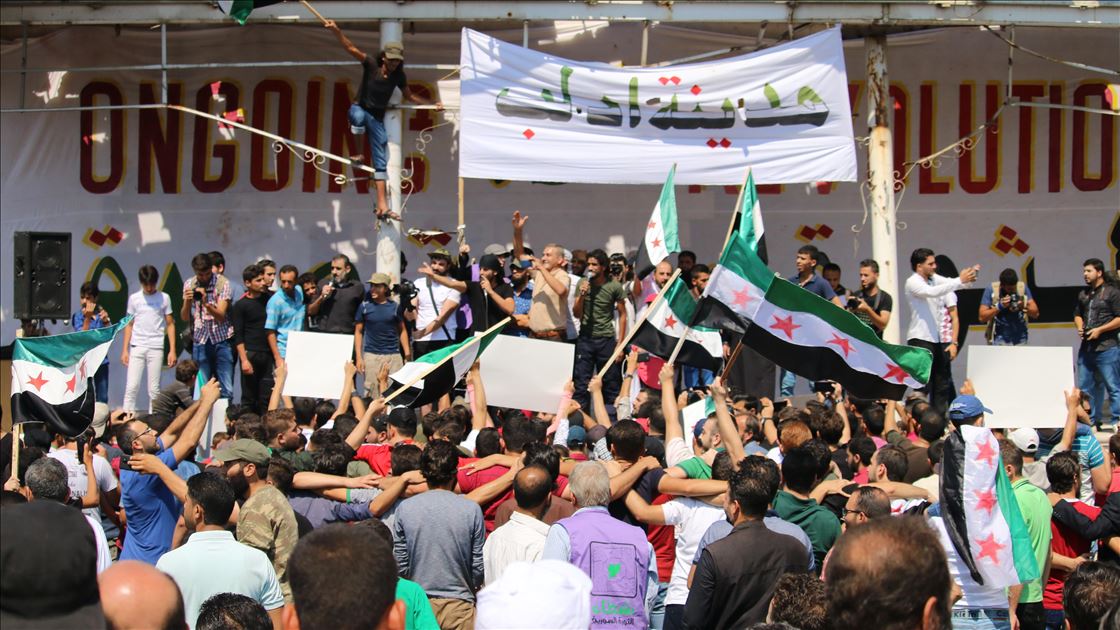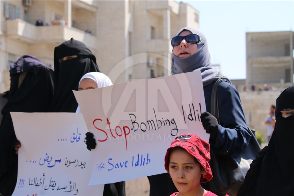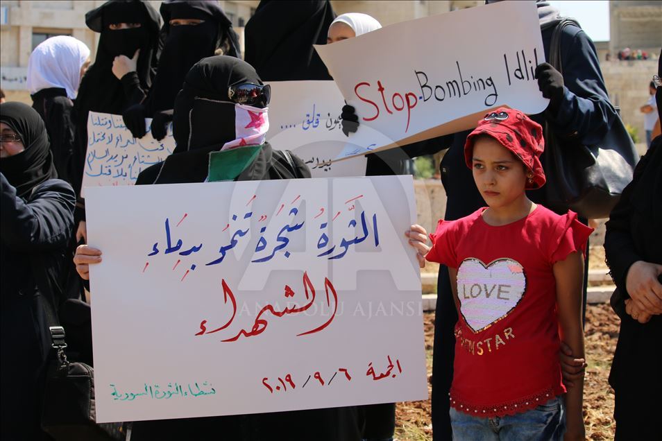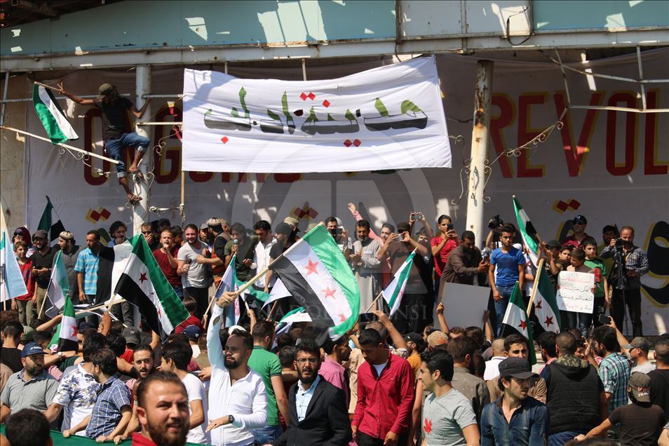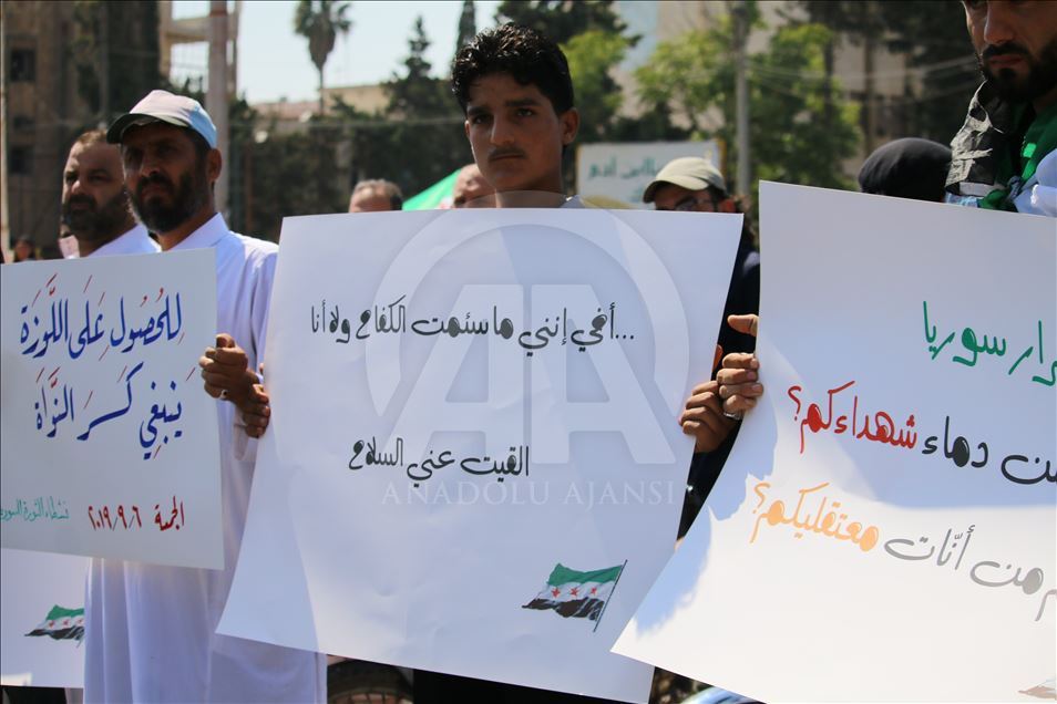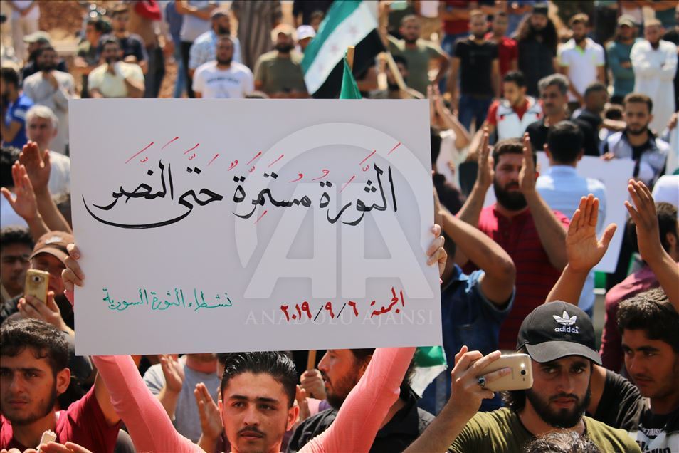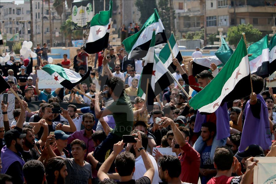 İdlib'deki siviller, rejim ve Rusya'yı protestoyu sürdürüyor
