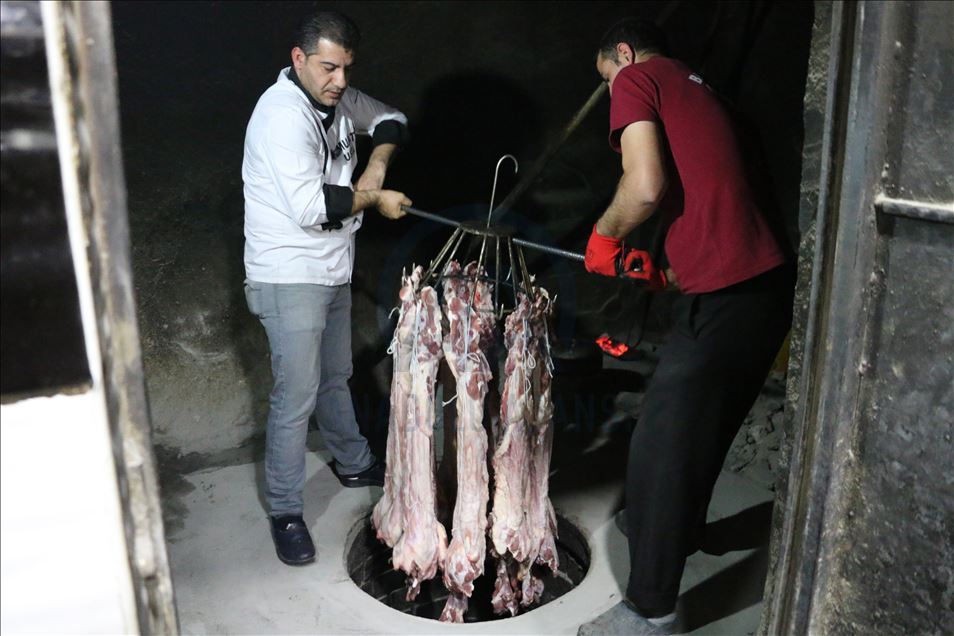 Siirt mutfağının önemli lezzetlerinden olan ve özel yöntemlerle kuyu şeklindeki tandırlarda pişirilen tescilli büryan kebabı, ramazan ayında da vazgeçilmez tatlarının başında yer alıyor. Sütten kesilmiş kuzu etinden hazırlanan ve Türk Patent ve Marka Kurumunca 17 yıl önce tescillenen büryan kebabı, damak çatlatan lezzetiyle iftar sofralarını süslüyor. Büryan ustası Murat Kayaalp (fotoğrafta), açıklamada bulundu. ( Mehmet Niyazi Deniz - Anadolu Ajansı )Mehmet Niyazi Deniz