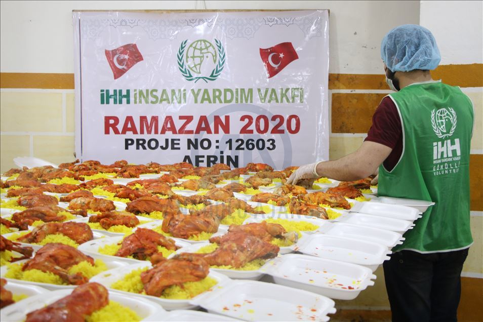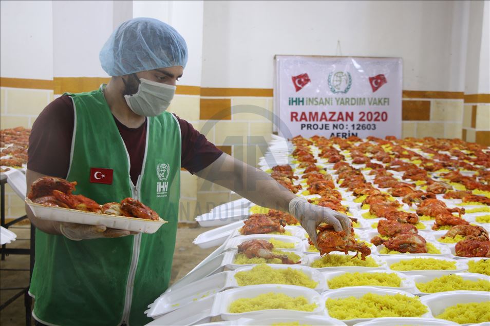 İnsan Hak ve Hürriyetleri (İHH) İnsani Yardım Vakfı, Suriye'nin Afrin bölgesindeki ihtiyaç sahibi ailelere, ramazanda 20 bin kişilik iftar yemeği dağıttı.