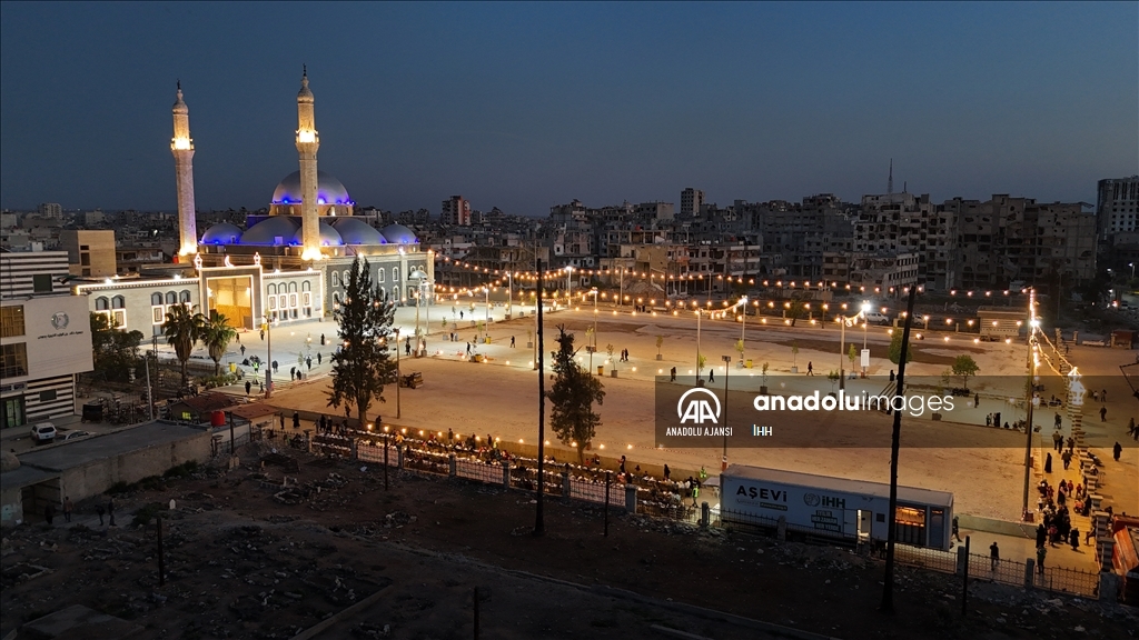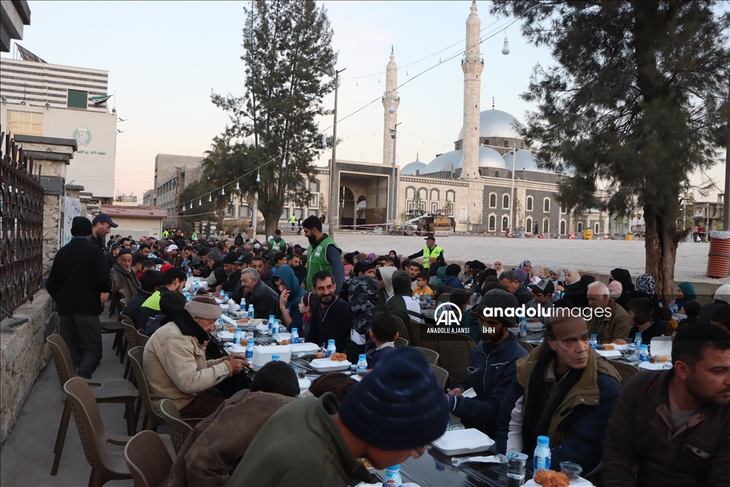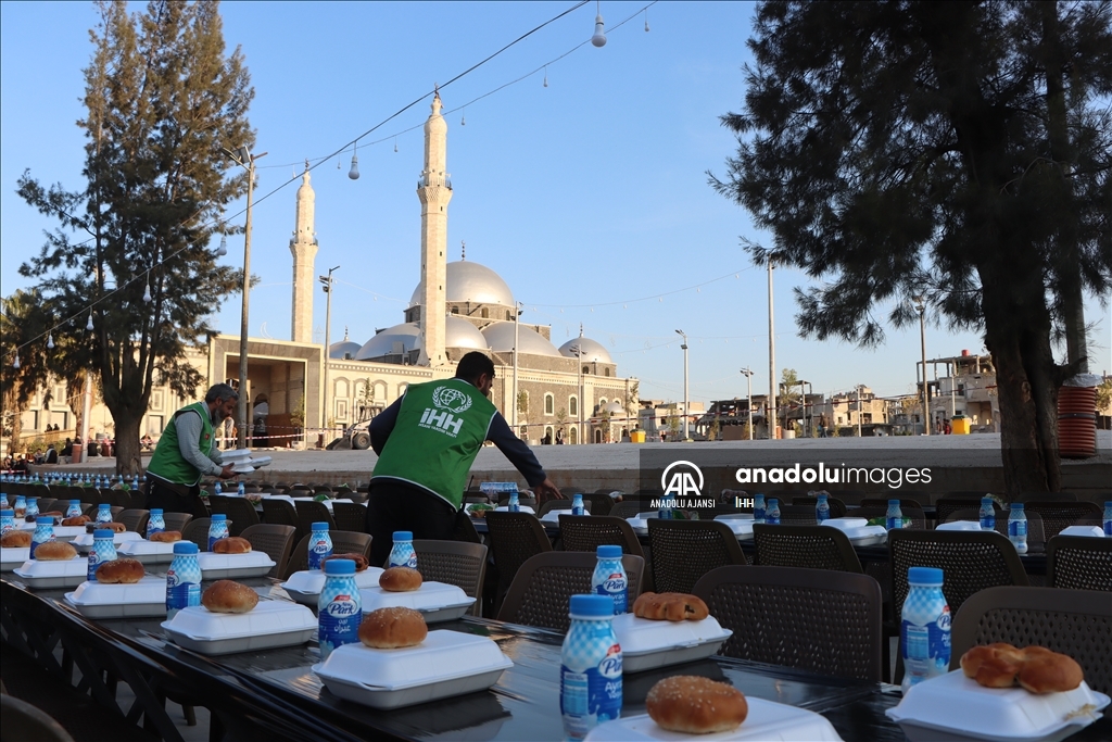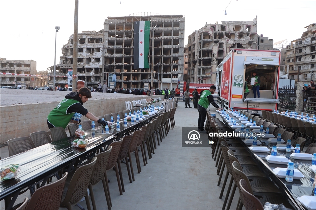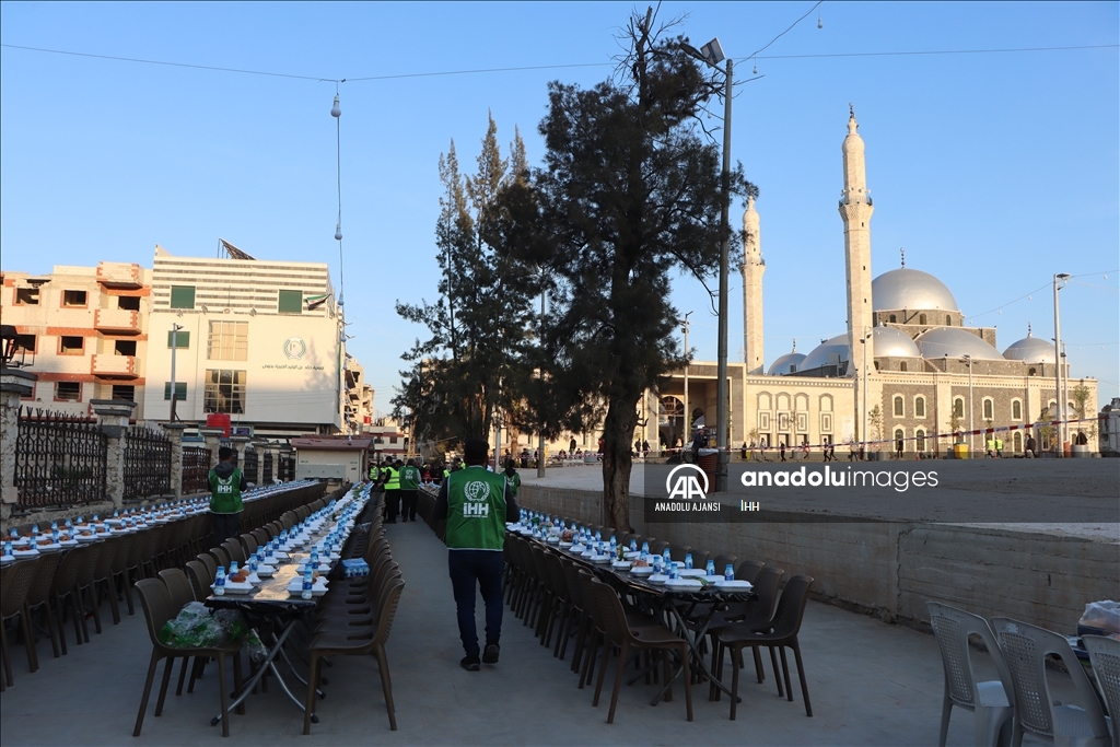 İnsan Hak ve Hürriyetleri (İHH) İnsani Yardım Vakfı, Suriye'nin Humus ilindeki Halid bin Velid Camii avlusunda her gün 1500 kişiye iftar veriyor.