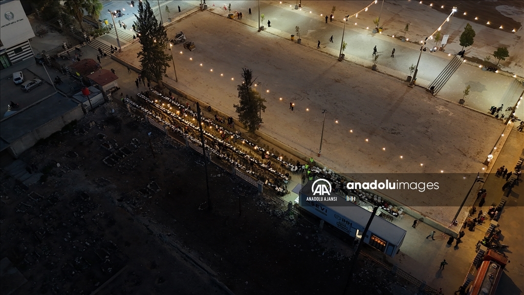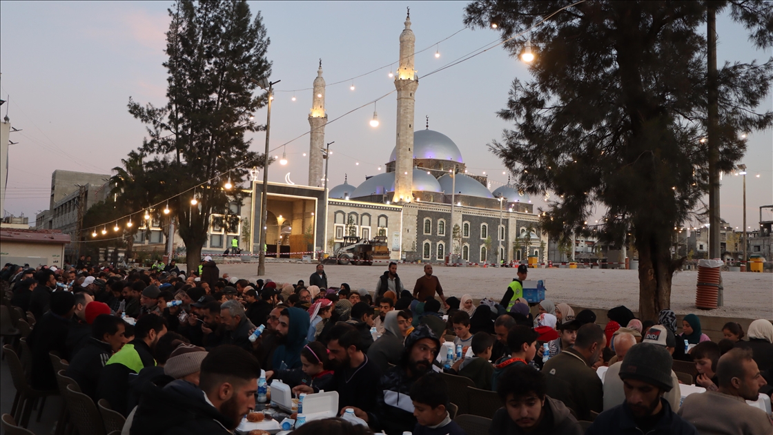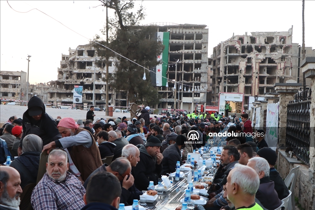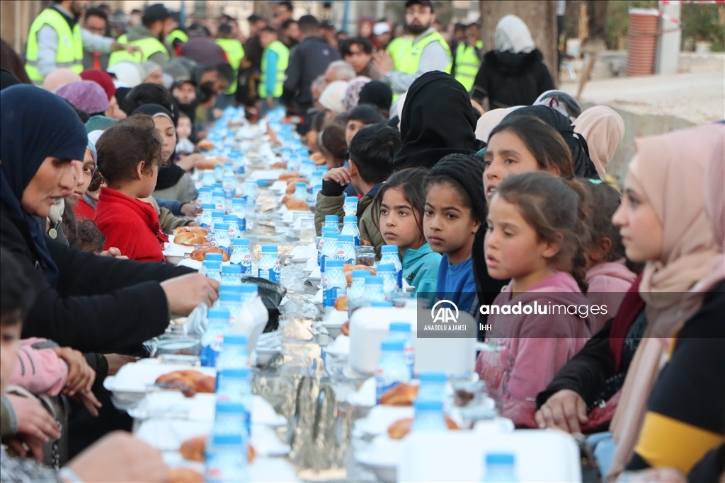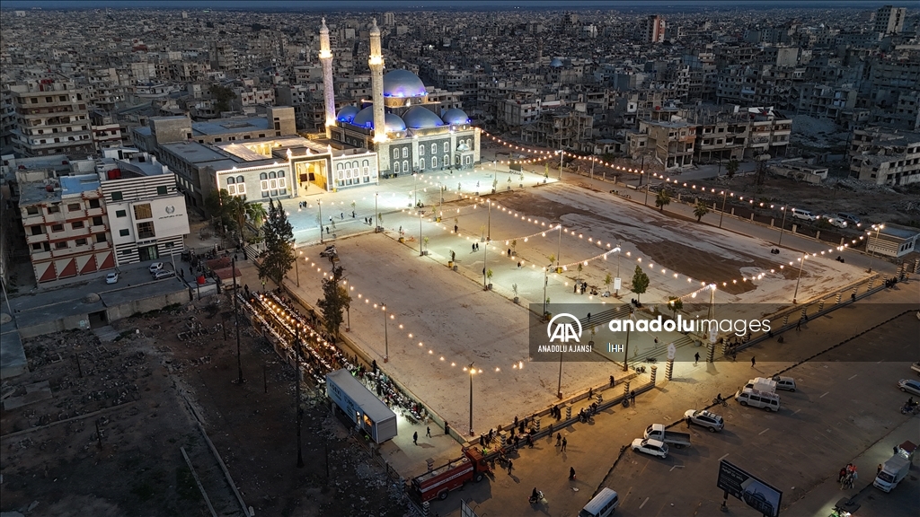 İnsan Hak ve Hürriyetleri (İHH) İnsani Yardım Vakfı, Suriye'nin Humus ilindeki Halid bin Velid Camii avlusunda her gün 1500 kişiye iftar veriyor.