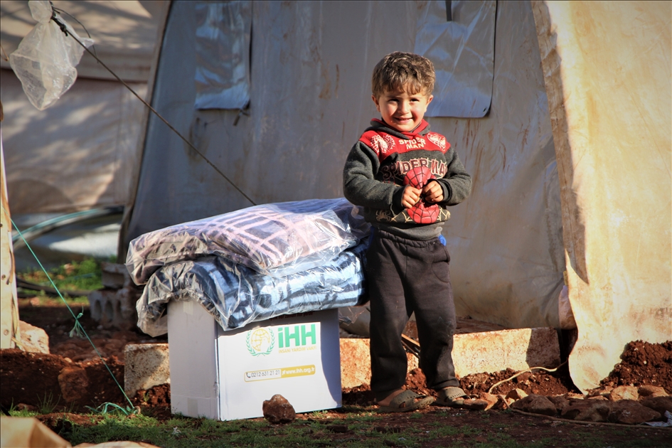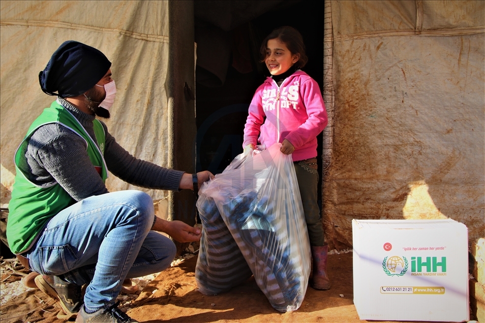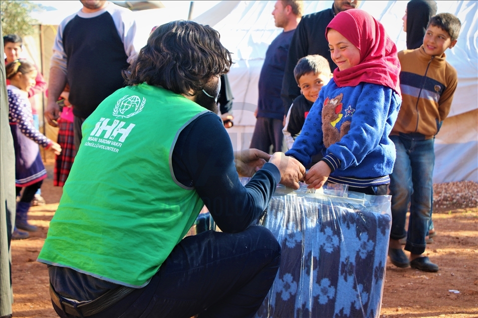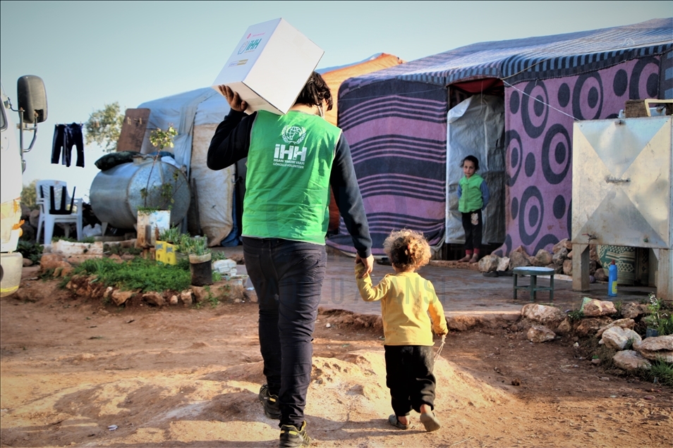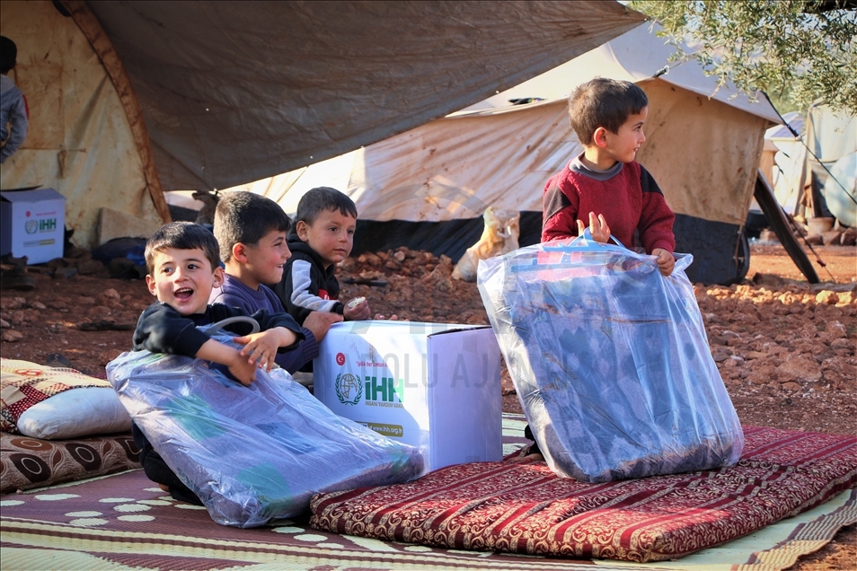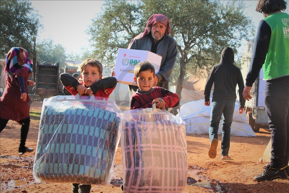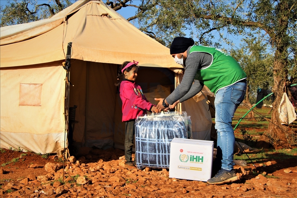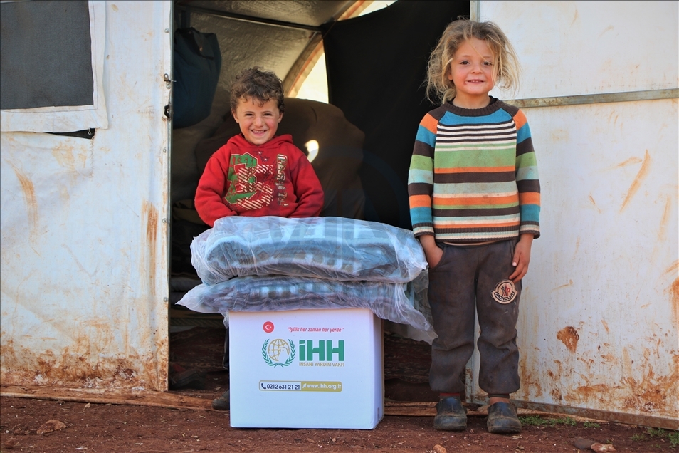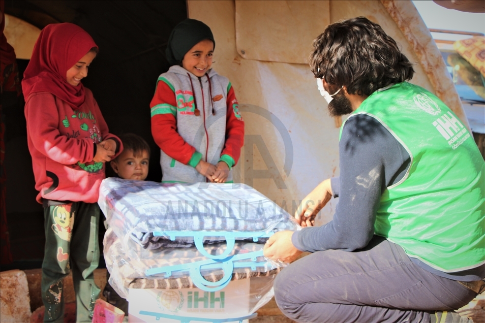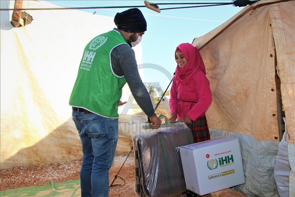 İnsan Hak ve Hürriyetleri (İHH) İnsani Yardım Vakfı tarafından Suriye'nin İdlib bölgesindeki 5 bin aileye battaniye ve gıda kolisi dağıtıldı.
