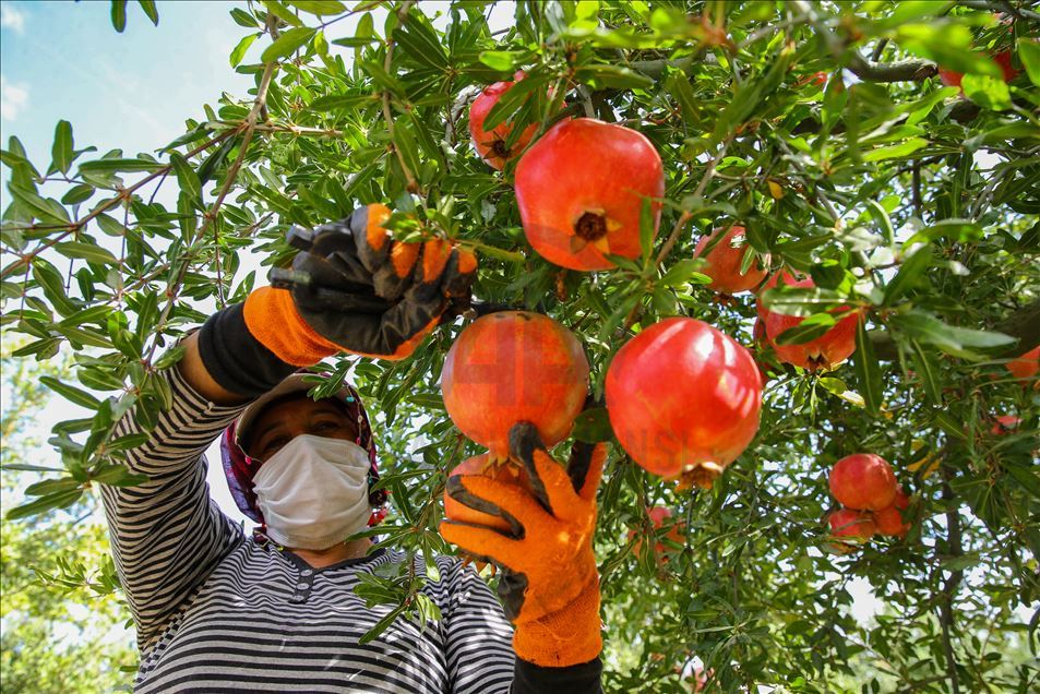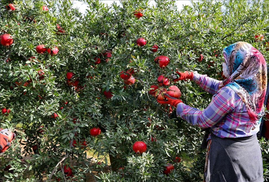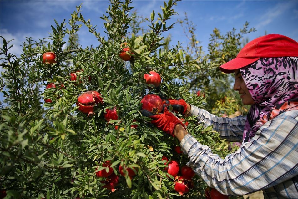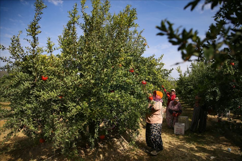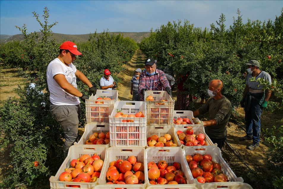 Bereketin sembol meyvesi narda Türkiye’nin ihracatı yılın 9 ayında yüzde 37 artarak 59 milyon 402 bin dolara yükseldi. Türkiye'de ihracat pazarlarına yönelik nar üretiminin önde gelen merkezlerinden İzmir'in Selçuk ilçesinde sabahın erken saatlerinde tarlaya gelen işçiler, ağaçlardan olgunlaşmış narları topluyor. ( Mehmet Emin Mengüarslan - Anadolu Ajansı )Mehmet Emin Mengüarslan