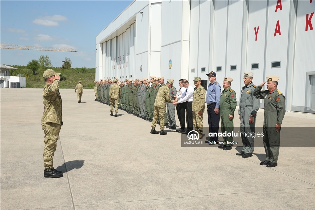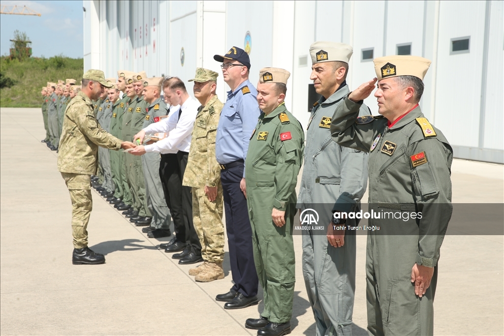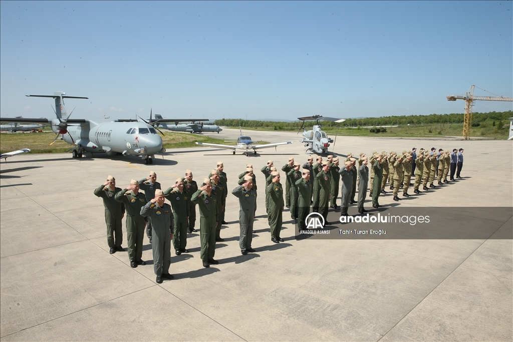 Kocaeli'nin Kartepe ilçesinde bulunan Cengiz Topel Deniz Hava Ana Üs Komutanlığı görev yapan askerler, Ramazan Bayramı'nı görev başında karşıladı. Deniz Hava Komutanlığı envanterindeki hava araçlarının bulunduğu Uçak Park Sahası'nda askeri personel, bayram tebligatı için taburdaki yerini aldı.