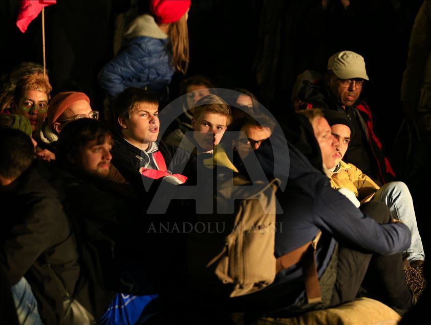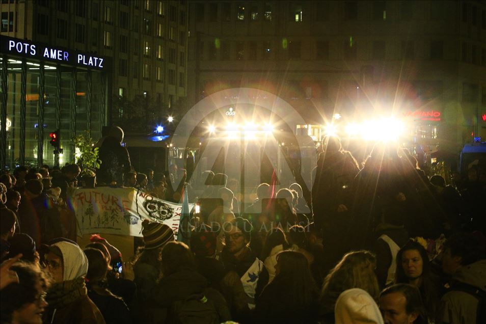 Extinction Rebellion isimli çevreci aktivist grubun üyeleri, başkent Berlin'de küresel ısınma ve iklim değişikliğine dikkat çekmek amacıyla protestolar düzenledi. Şehrin merkezindeki Postdamer Platz Meydanı'nı trafiğe kapatan aktivistlere, polisler müdahale etti. ( Abdülhamid Hoşbaş - Anadolu Ajansı )Abdülhamid Hoşbaş