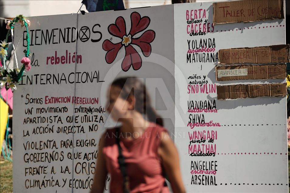 Extinction Rebellion isimli çevreci aktivist grubun üyeleri, başkent Berlin'de küresel ısınma ve iklim değişikliğine dikkat çekmek amacıyla protestolar düzenledi. Şehrin merkezinde yer alan Zafer Anıtı çevresindeki yolları trafiğe kapatan grup üyeleri, şehrin farklı noktalarında tiyatral etkinliklerde düzenledi.