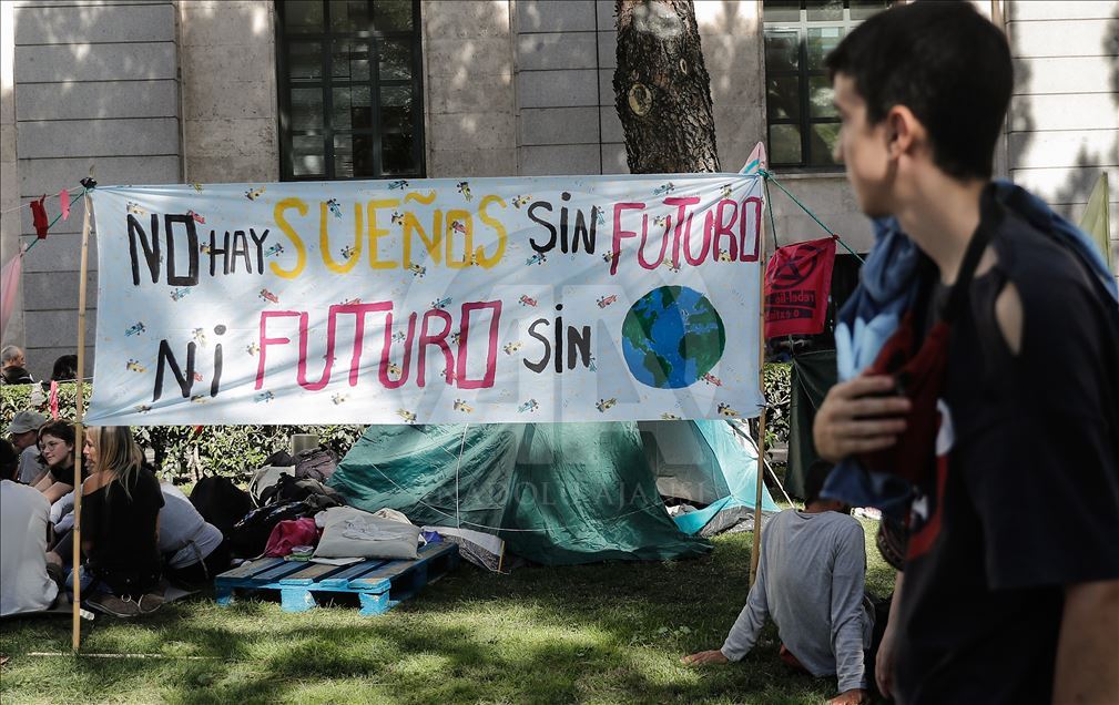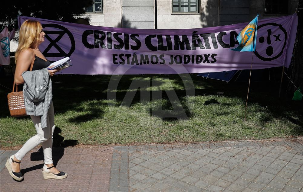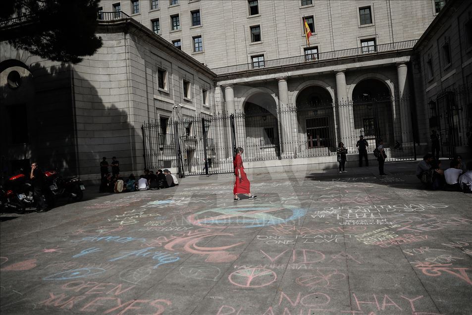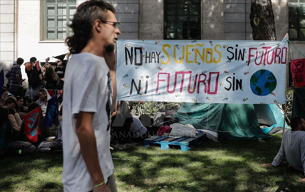 İspanya'nın başkenti Madrid'de çevreciler, küresel ısınma ve iklim değişikliğine dikkati çekmek amacıyla Ekolojik Geçiş Bakanlığı önünde eylem yaptı.