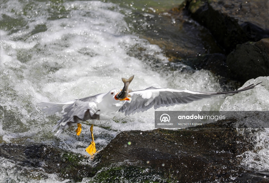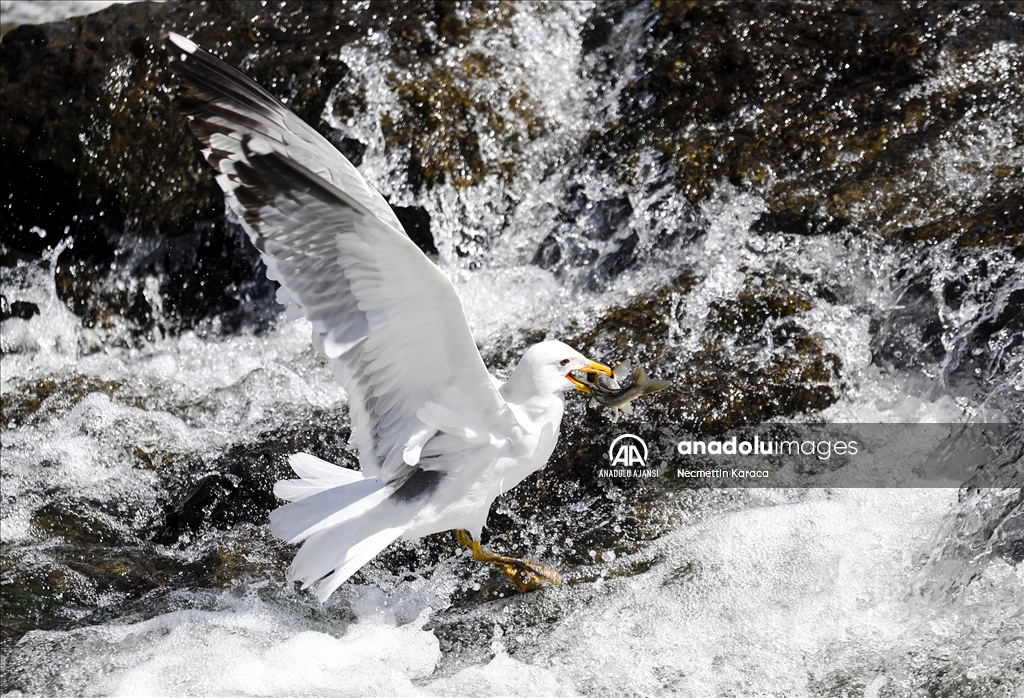 Van Gölü'nde yaşayan binlerce inci kefali, su sıcaklığının yeterli seviyeye yükselmesiyle üremek için akışın tersine yüzerek tatlı sulara göç etmeye başladı. Van Gölü kıyısındaki yerleşim yerlerinde 15 bini aşkın kişinin geçim kaynağı inci kefali, her yıl üreme dönemi 15 Nisan-15 Temmuz'da zorlu yolculuğa çıkıyor. Gölün tuzlu ve sodalı suyundan derelerdeki tatlı sulara ulaşmak için suyun akışının tersine yüzen, karşısına çıkan engelleri zıplayarak geçmeye çalışan balıklar, her yıl bu mevsimde görsel şölen sunuyor. ( Necmettin Karaca - Anadolu Ajansı )Necmettin Karaca