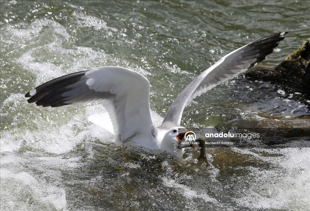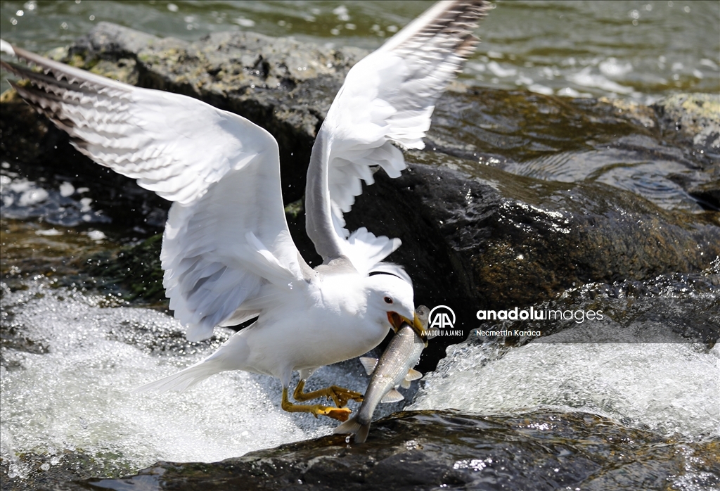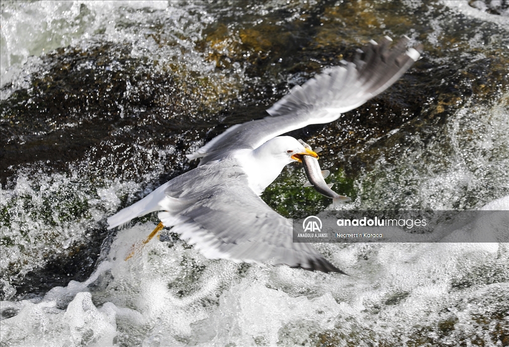 Van Gölü'nde yaşayan ve 15 bini aşkın kişinin geçim kaynağı binlerce inci kefali, su sıcaklığının yeterli seviyeye yükselmesiyle üremek için akışın tersine yüzerek tatlı sulara göç etmeye başladı.