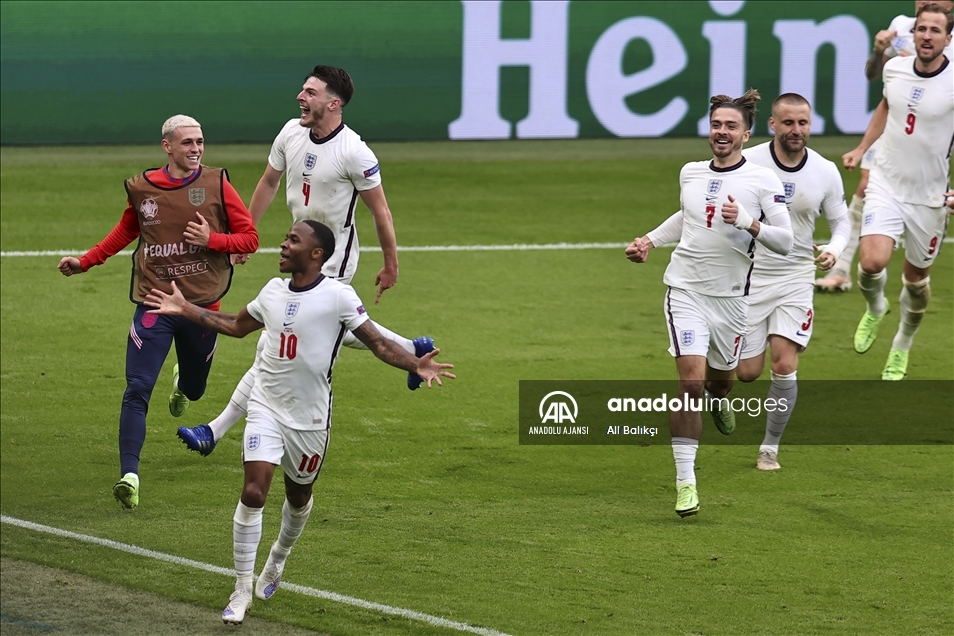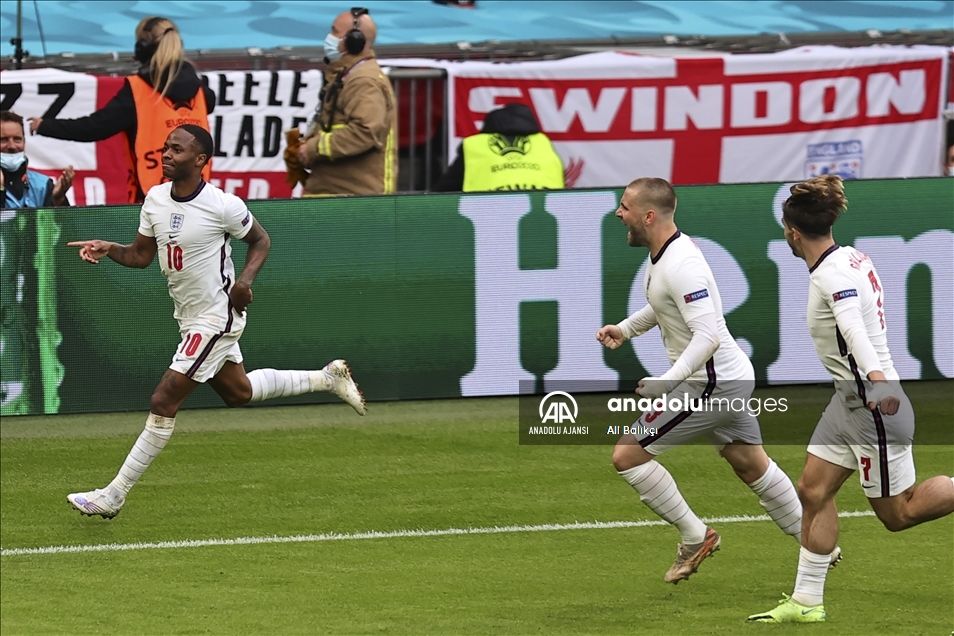 Avrupa Futbol Şampiyonası (EURO 2020) son 16 turunda İngiltere ile Almanya Wembley Stadı'nda karşılaştı. İngiltere Milli takım oyuncusu Raheem Sterling (10) attığı gol sonrası sevinç yaşandı. ( Ali Balıkçı - Anadolu Ajansı )Ali Balıkçı