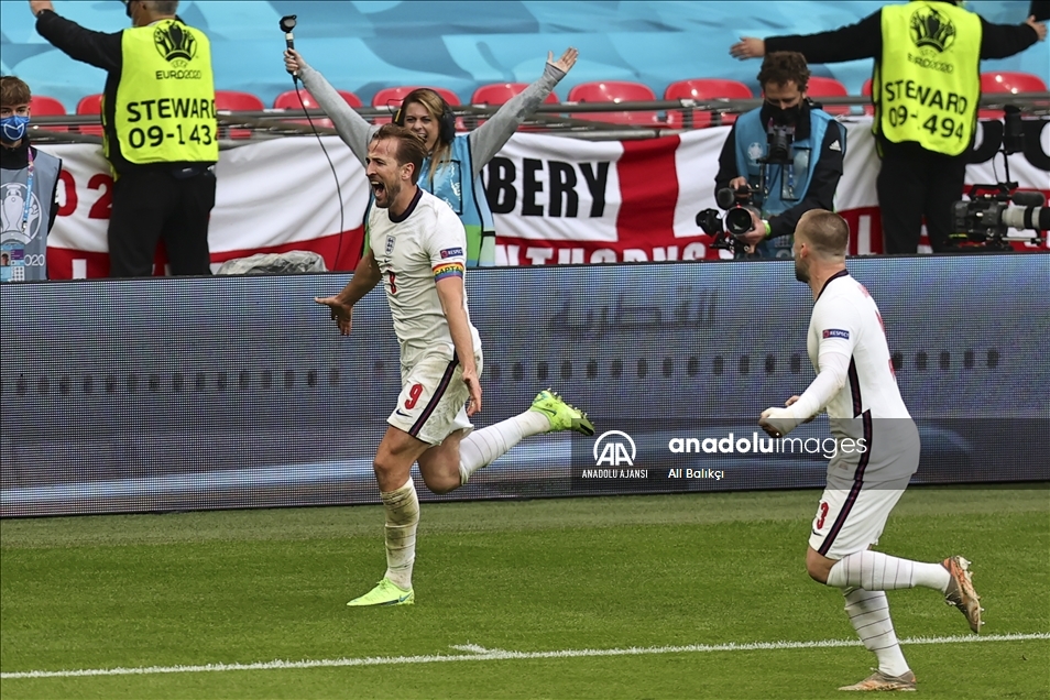 Avrupa Futbol Şampiyonası (EURO 2020) son 16 turunda İngiltere ile Almanya Wembley Stadı'nda karşılaştı. İngiltere Milli takım oyuncusu Harry Kane (9) attığı gol sonrası sevinç yaşandı. ( Ali Balıkçı - Anadolu Ajansı )Ali Balıkçı