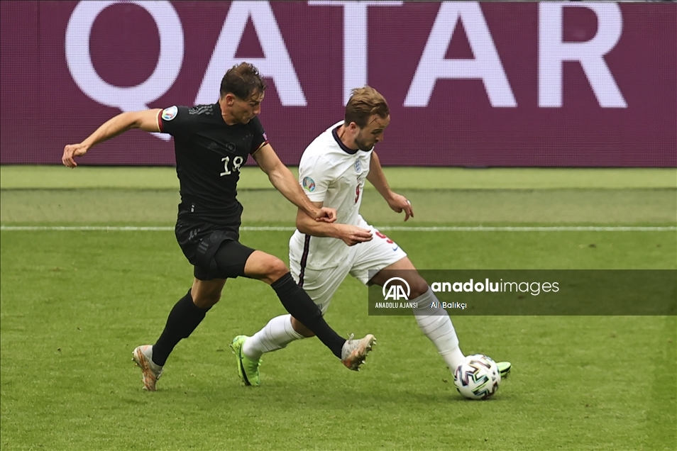 Avrupa Futbol Şampiyonası (EURO 2020) son 16 turunda İngiltere ile Almanya Wembley Stadı'nda karşılaştı. İngiltere Milli takım oyuncusu Harry Kane (9) rakibi Leon Goretzka (18) ile mücadele etti. ( Ali Balıkçı - Anadolu Ajansı )Ali Balıkçı