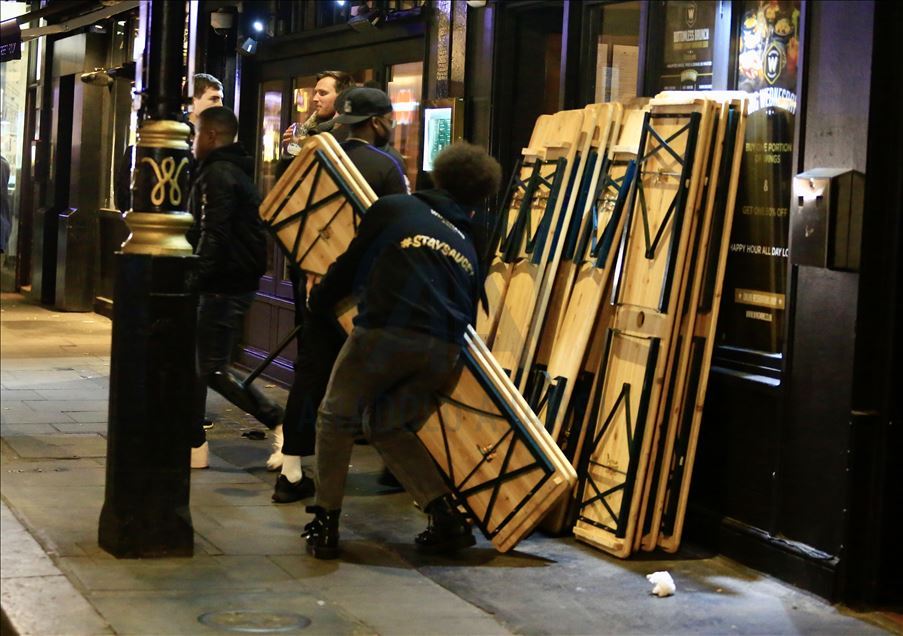 İngiltere’de yeni tip koronavirüsle (Kovid-19) mücadele kapsamında alınan karantina kararıyla beraber bar, restoran ve temel ihtiyaç malzemeleri satmayan tüm işletmeler kapatıldı. ( Hasan Esen - Anadolu Ajansı )Hasan Esen