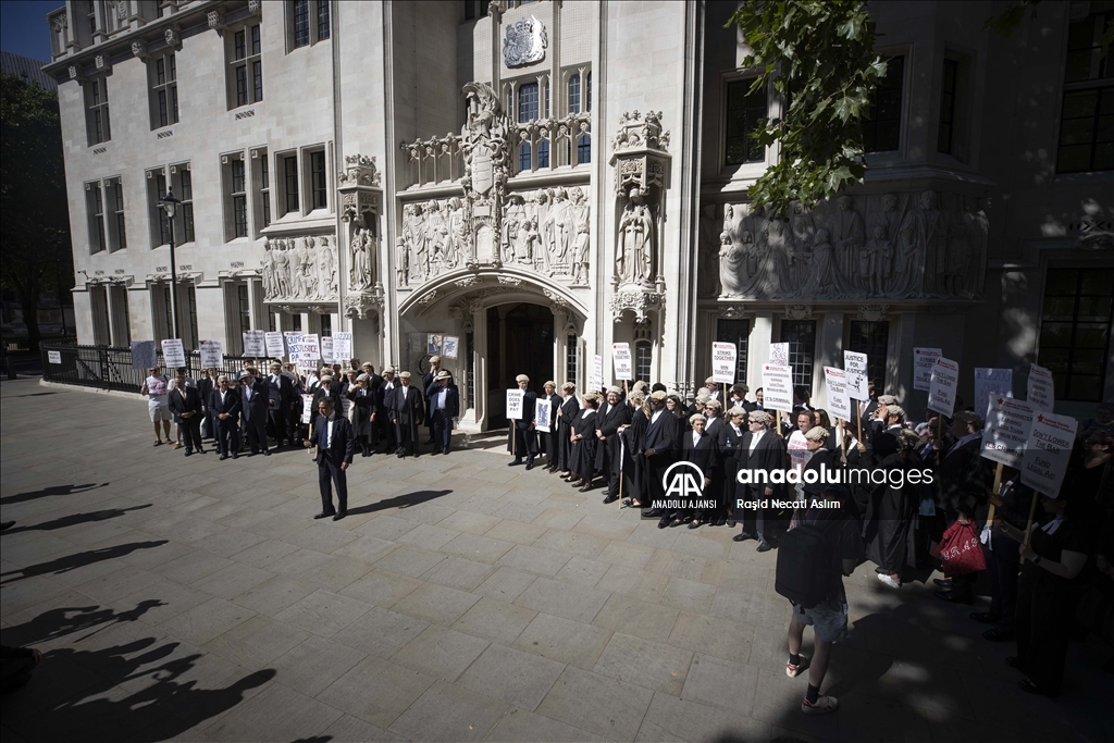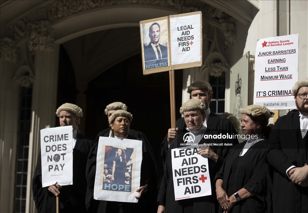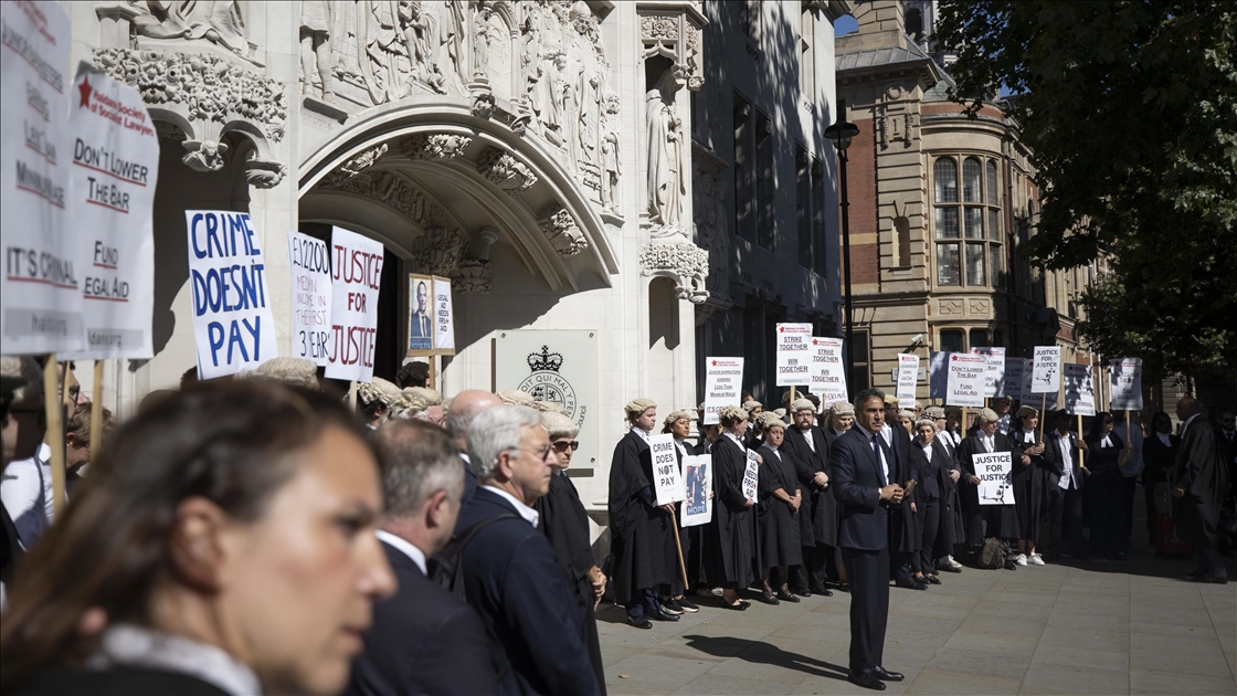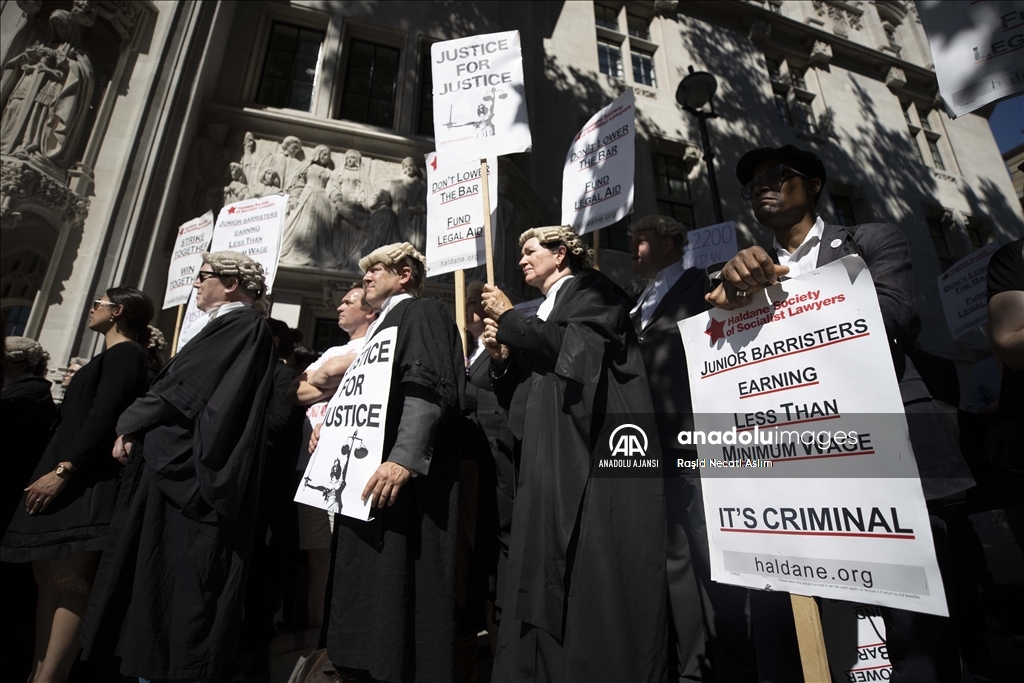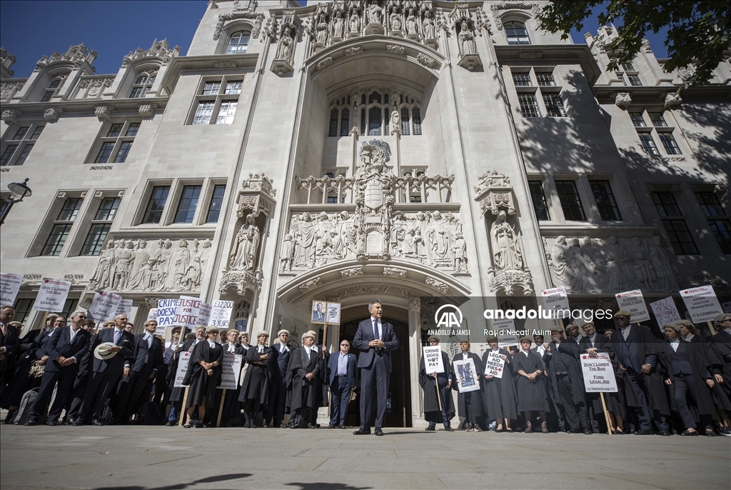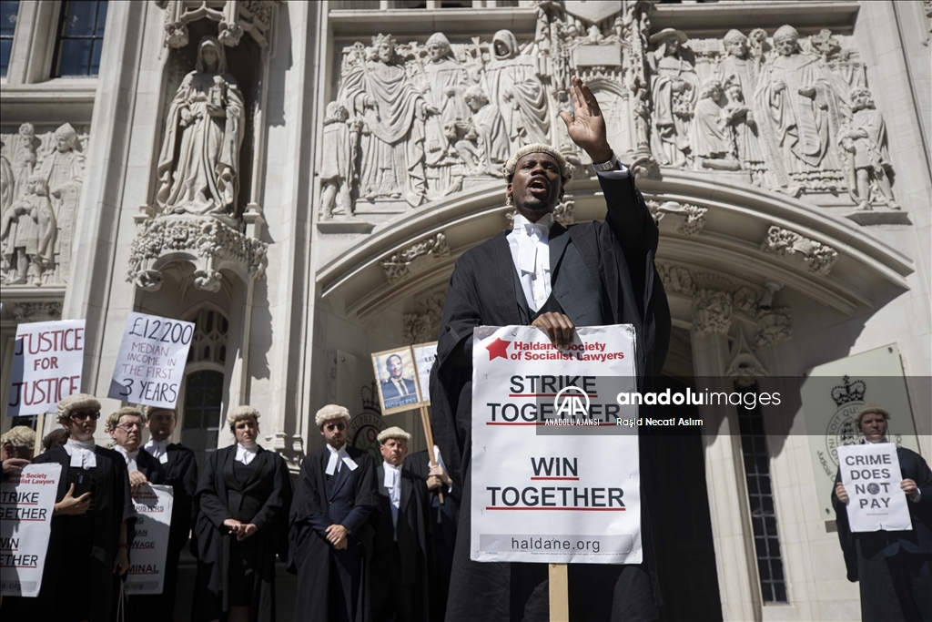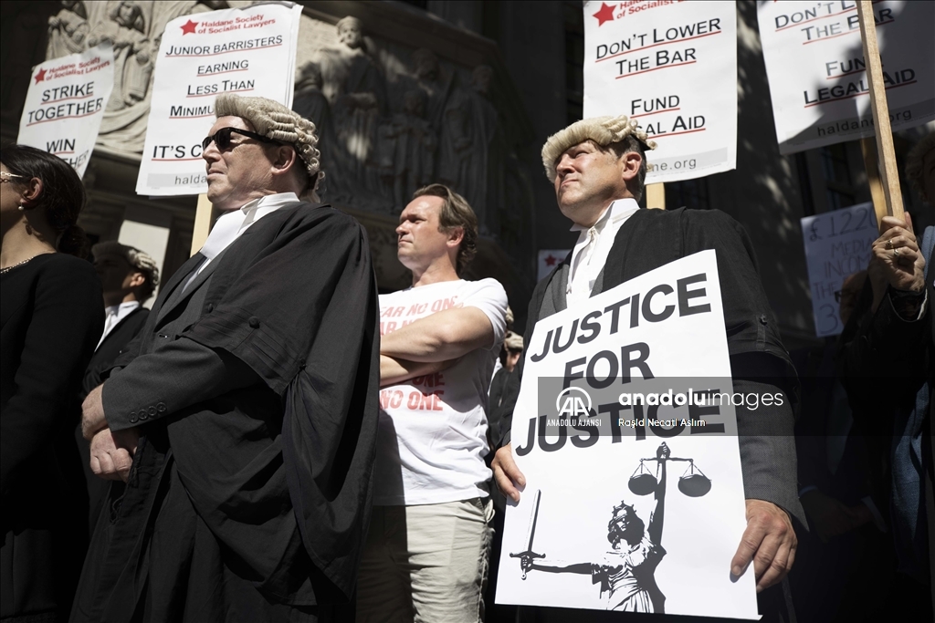İngiltere'de Ceza Avukatları Derneği’nin (CBA), ücretlerde yüzde 15'lik artış teklifinin yetersiz olduğu ve yıllarca süren fon kesintilerinin telafisi için yüzde 25'lik artış talebiyle başlattıkları grev devam ediyor. Başkent Londra'daki Yüksek Mahkeme’nin önünde toplanan ceza avukatları greve destek verdi.