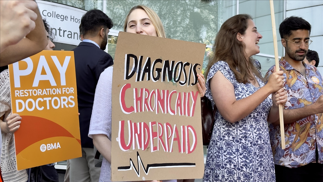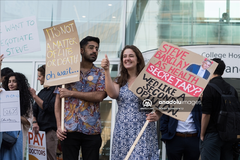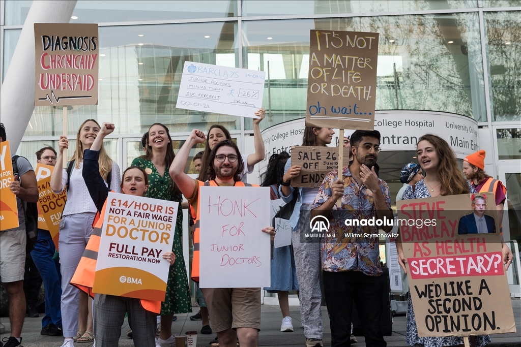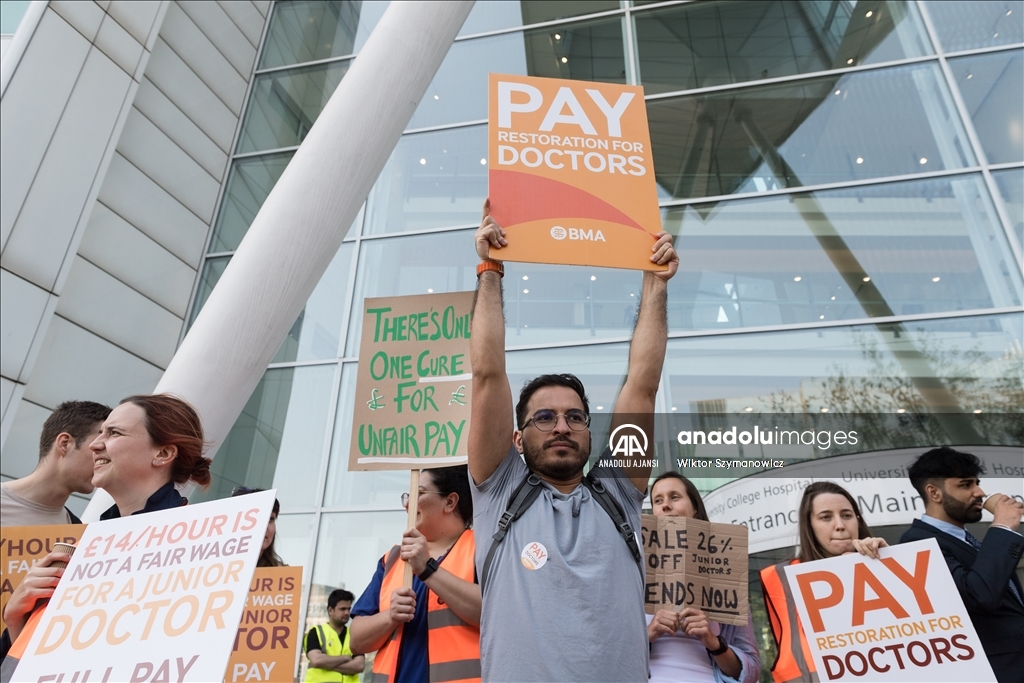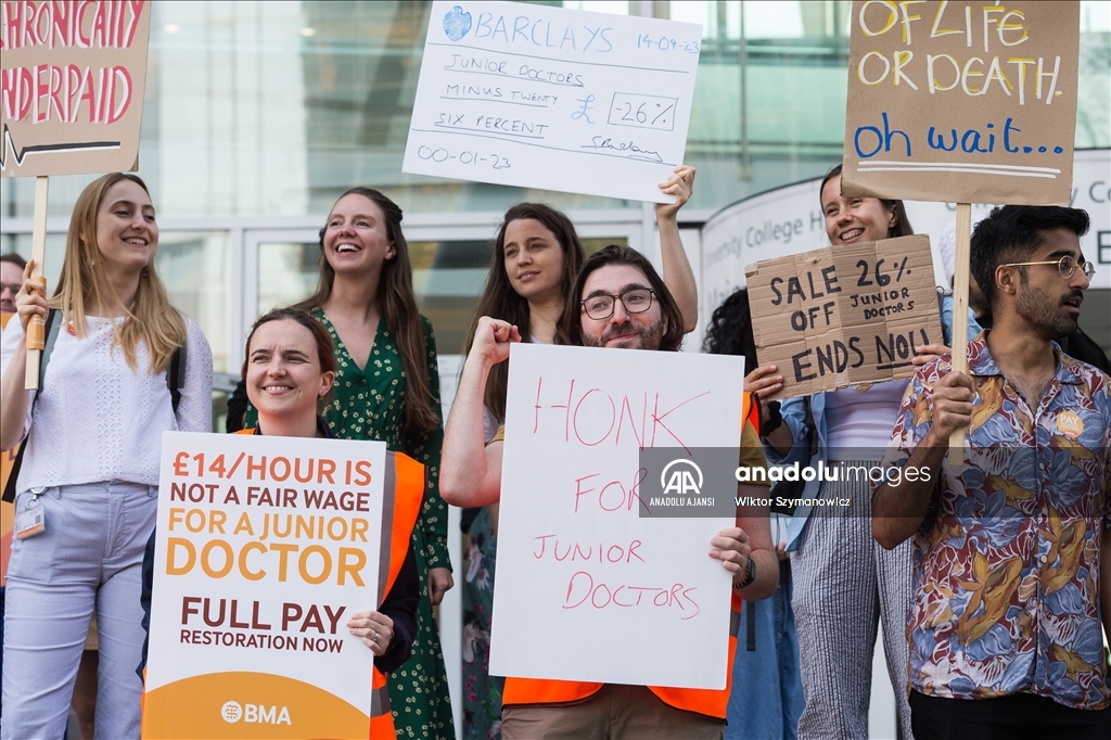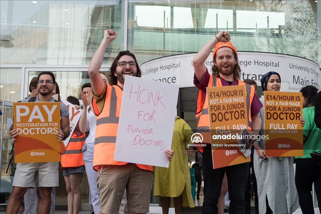 Londra'da pratisyen hekimler, maaş zammı artışına ilişkin hükümetle süregelen anlaşmazlık nedeniyle bu yıl üçüncü kez iş bıraktı. Ülkede sağlık alanındaki iş gücünün yaklaşık yarısını oluşturan pratisyen hekimler, 72 saatlik greve gitti.