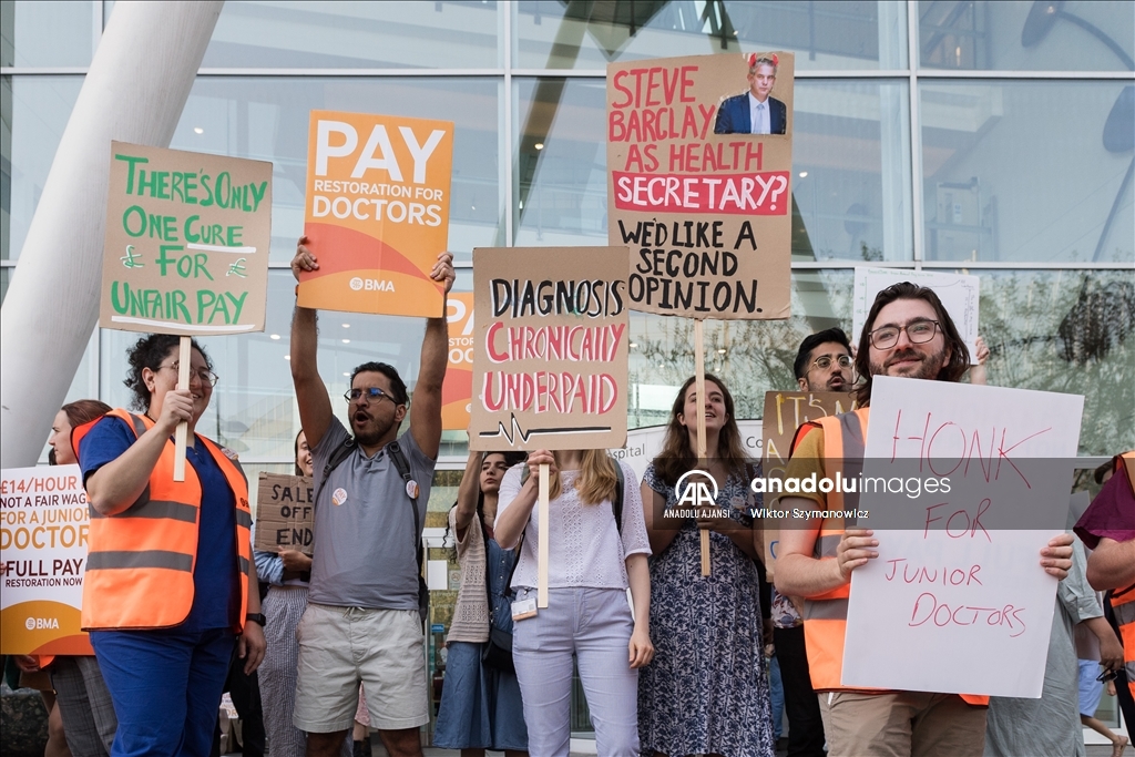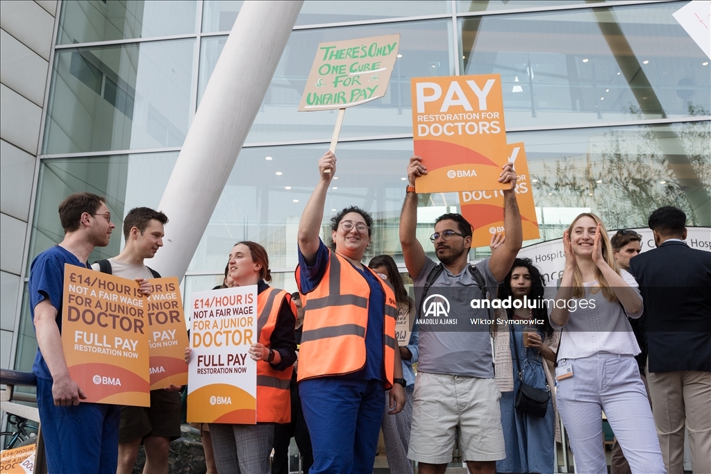 İngiltere'nin başkenti Londra'da pratisyen hekimler, maaş zammı artışına ilişkin hükümetle süregelen anlaşmazlık nedeniyle bu yıl üçüncü kez iş bıraktı. Ülkede sağlık alanındaki iş gücünün yaklaşık yarısını oluşturan pratisyen hekimler, hem rutin hem de acil bakım hizmetlerinde 72 saatlik greve gitti. ( Wiktor Szymanowicz - Anadolu Ajansı )Wiktor Szymanowicz