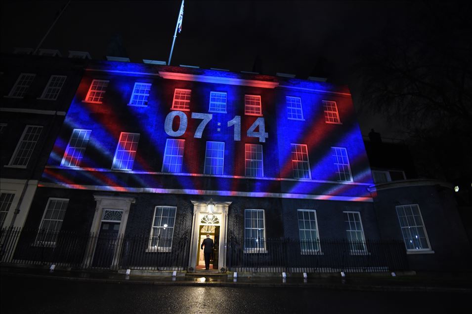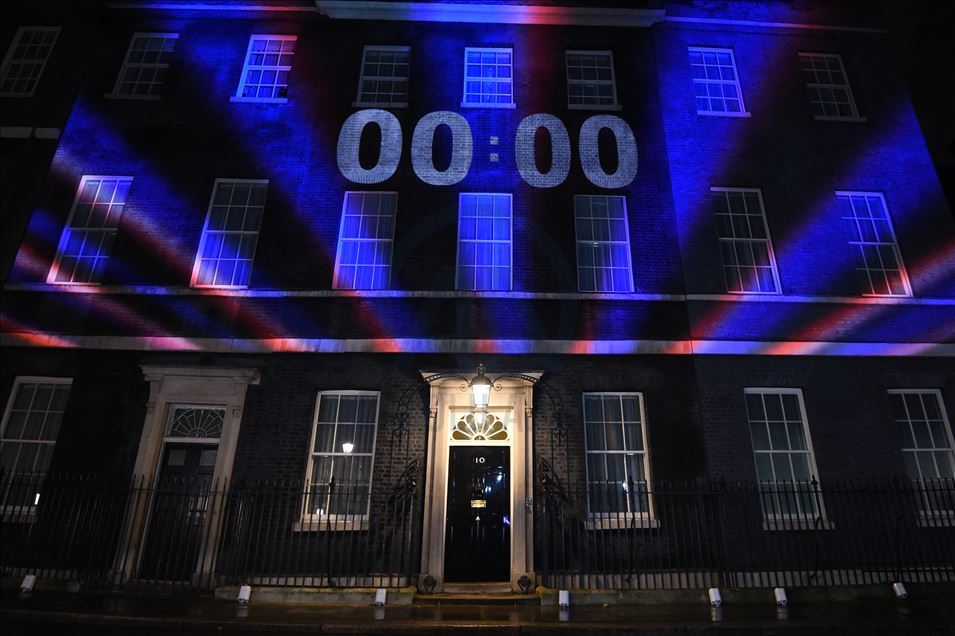 İngiltere, 1973'te katıldığı AB'den yerel saatle 23.00'te (TSİ 02.00) ayrılırken, "Brexit günü" kapsamında hem devlet kurumları hem de özel kuruluşlar çeşitli kutlamalar yaptı. Bu kapsamda, Başbakanlık binası "10 Numara"ya yansıtılan saatle geriye sayım yapıldı. Bazı hükümet binaları, İngiliz bayrağı renklerinde ışıklandırdı. ( Kate Green - Anadolu Ajansı )Kate Green
