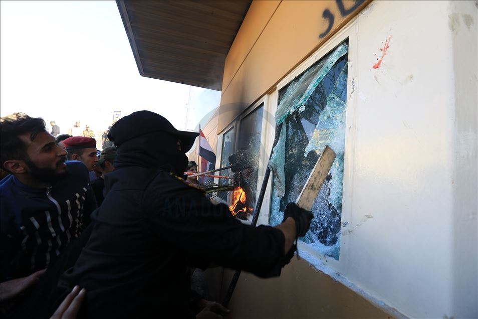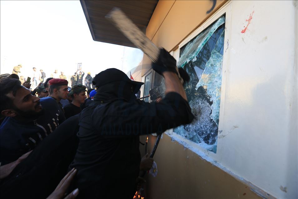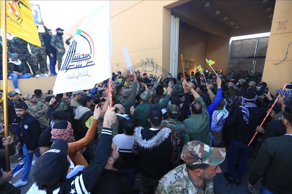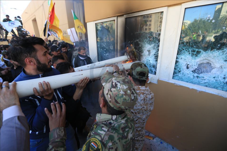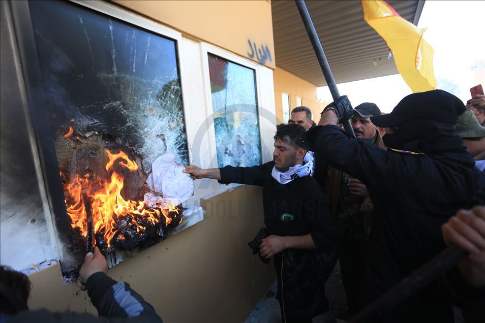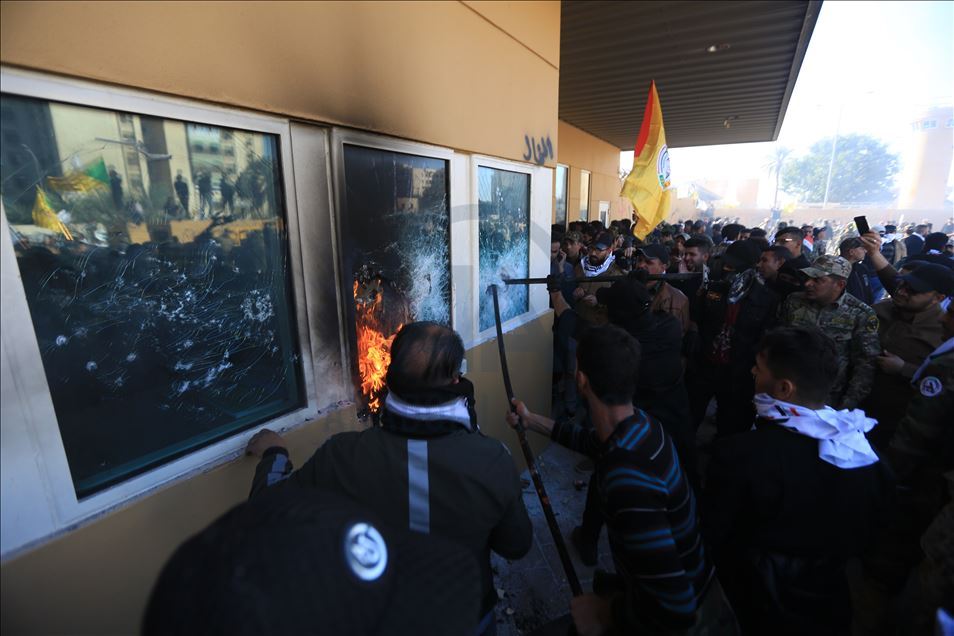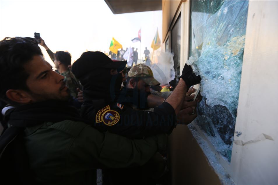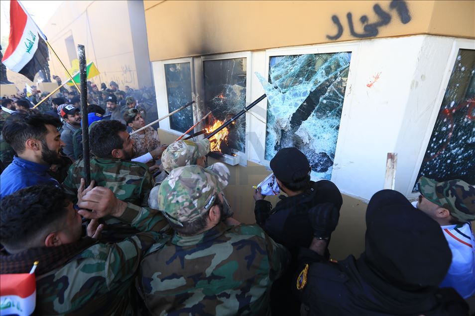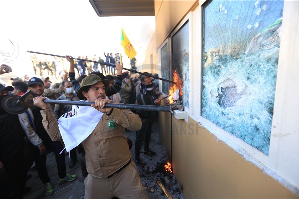 Irak'ta Şii milis gücü Haşdi Şabi yanlısı protestocular, ABD'nin Bağdat Büyükelçiliği binasını basarak içeri girdi. ABD yönetiminin Haşdi Şabieya bağlı Hizbullah Tugayları'na düzenlediği saldırıyı protesto etmek için başkent Bağdat'taki ABD Büyükelçiliği önünde toplanan protestocular, bayrak ve dövizler taşıdı.