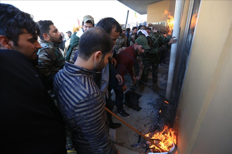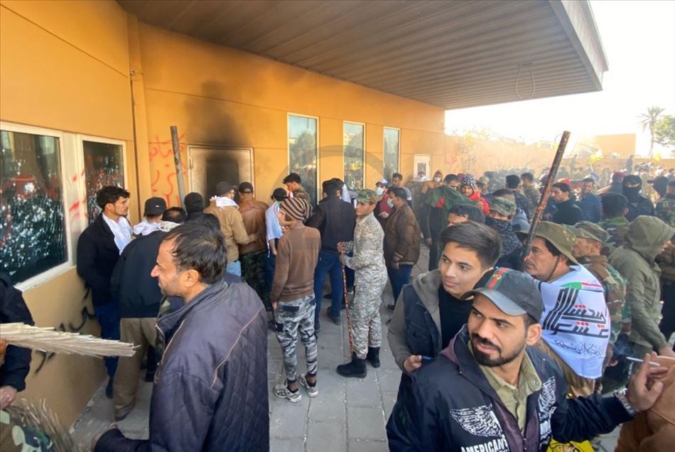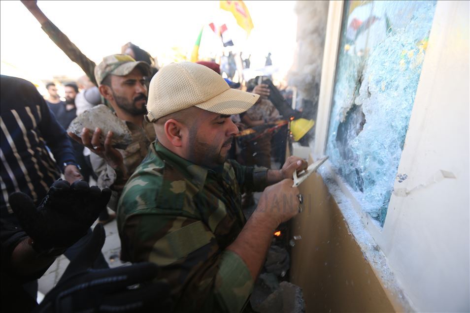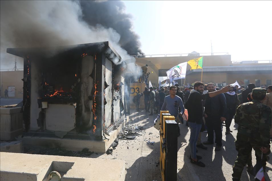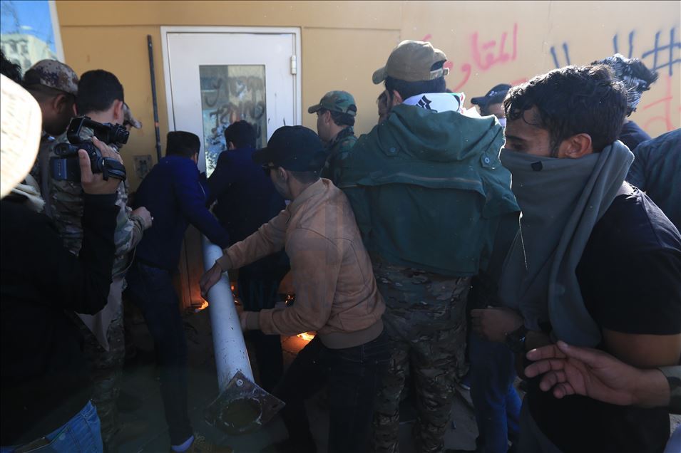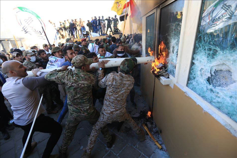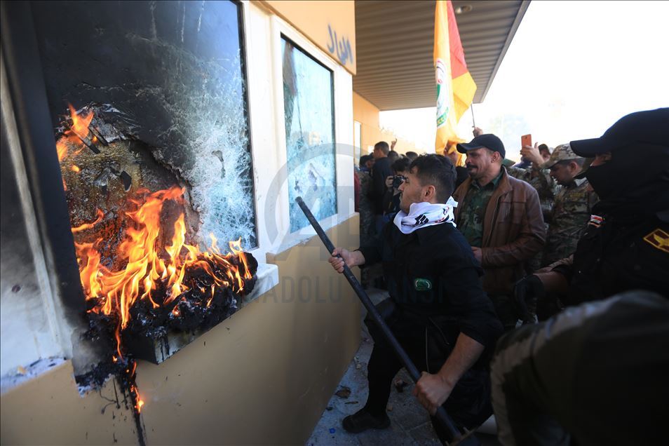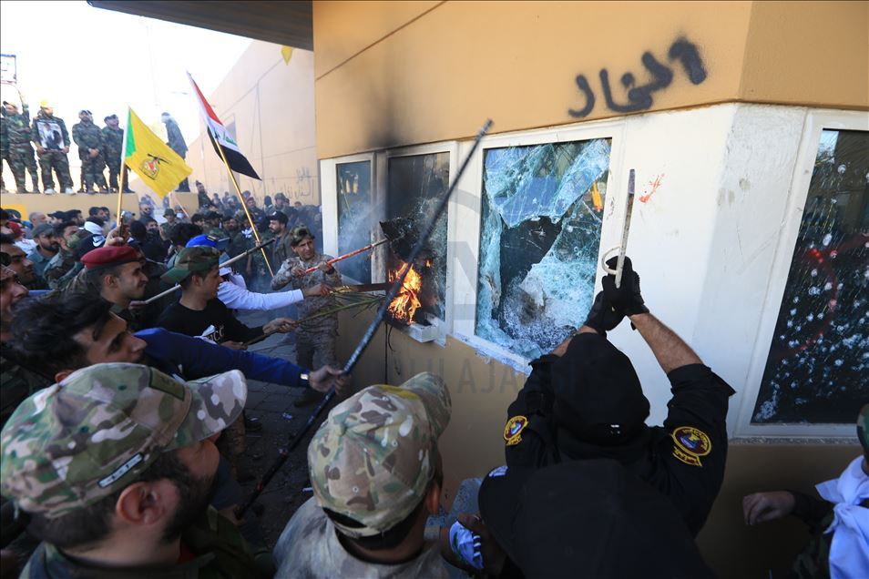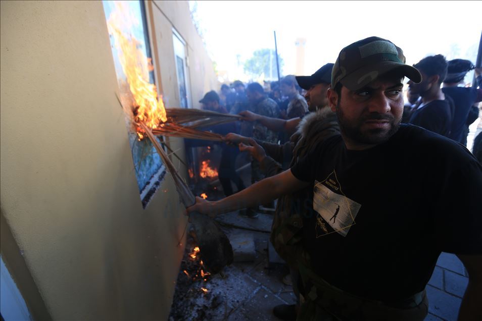 Irak'ta Şii milis gücü Haşdi Şabi yanlısı protestocular, ABD'nin Bağdat Büyükelçiliği binasını basarak içeri girdi. ABD yönetiminin Haşdi Şabieya bağlı Hizbullah Tugayları'na düzenlediği saldırıyı protesto etmek için başkent Bağdat'taki ABD Büyükelçiliği önünde toplanan protestocular, bayrak ve dövizler taşıdı.