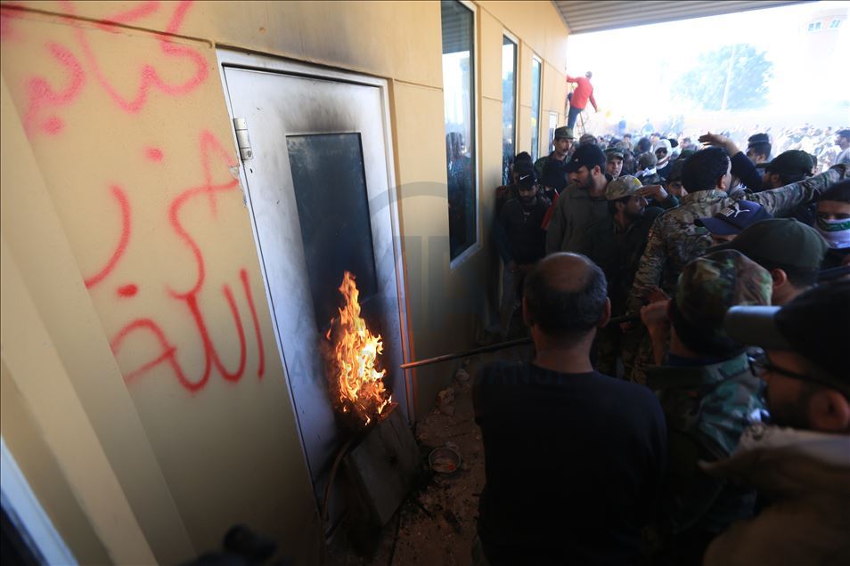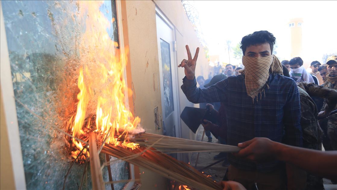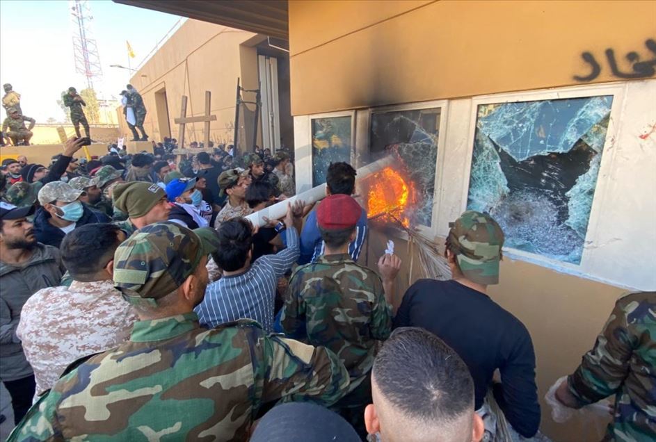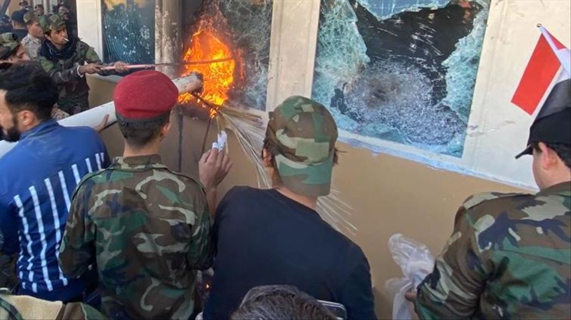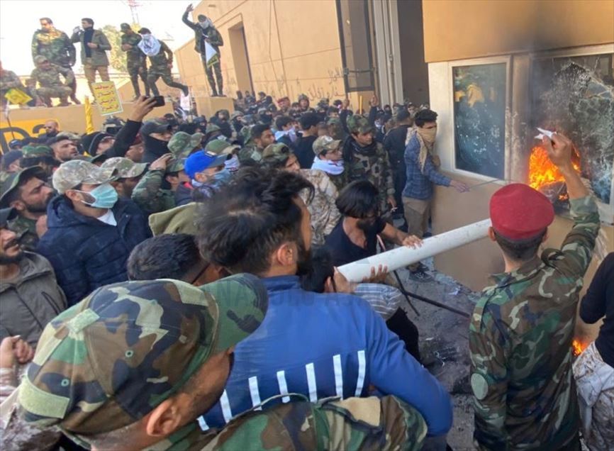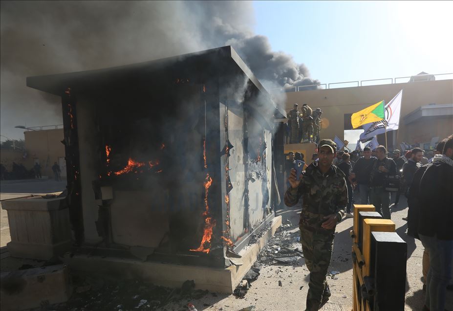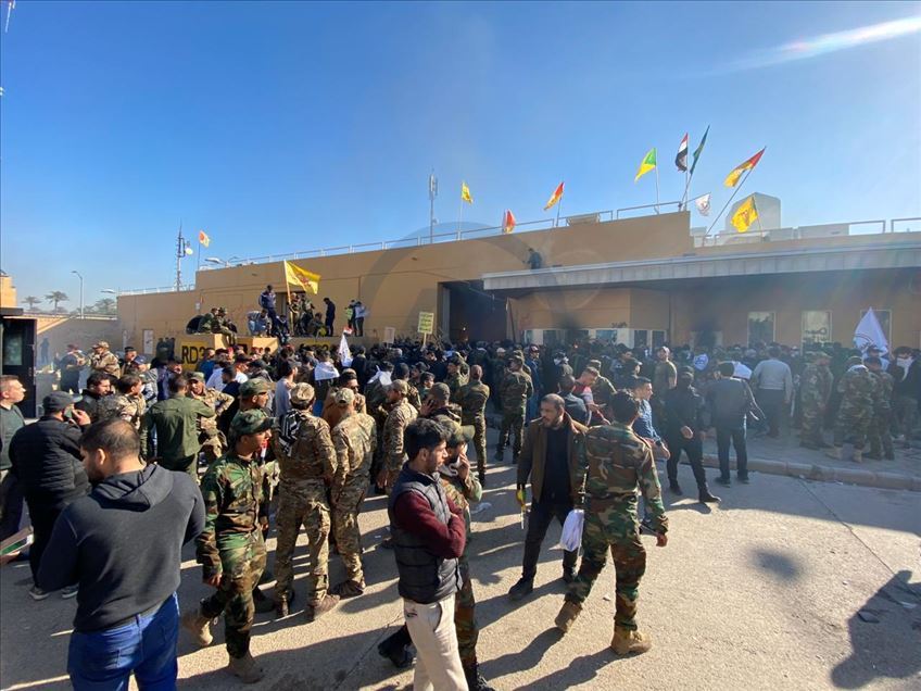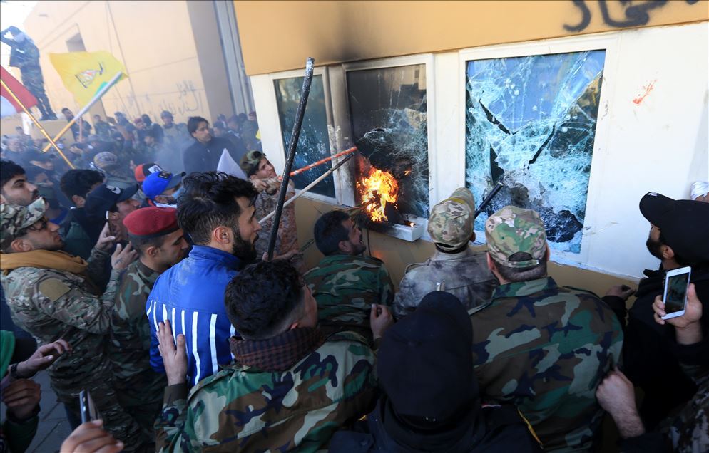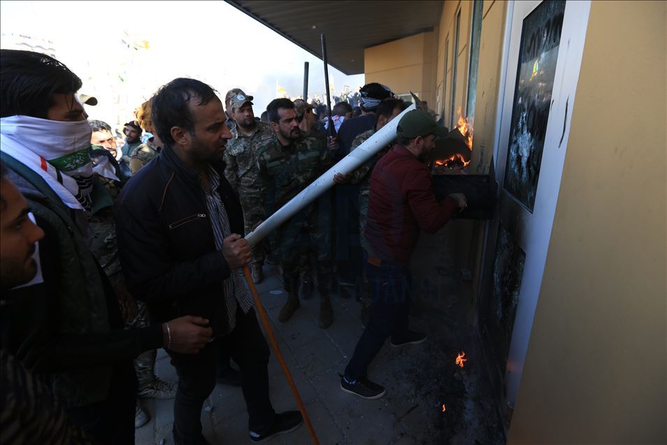 Irak'ta Şii milis gücü Haşdi Şabi yanlısı protestocular, ABD'nin Bağdat Büyükelçiliği binasını basarak içeri girdi. ABD yönetiminin Haşdi Şabieya bağlı Hizbullah Tugayları'na düzenlediği saldırıyı protesto etmek için başkent Bağdat'taki ABD Büyükelçiliği önünde toplanan protestocular, bayrak ve dövizler taşıdı.