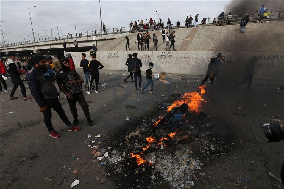 Irak'taki hükümet karşıtı göstericiler, aralarında başkent Bağdat'ın da bulunduğu ülkedeki 18 vilayetten 9'unda yol kapatma eylemlerini sürdürüyor. Başkentin merkeziyle iki yakasını birbirine bağlayan otoban ve köprüleri de lastik yakarak kapatan eylemciler araç geçişine izin vermiyor. Güvenlik güçleri, bölgede önlem aldı.