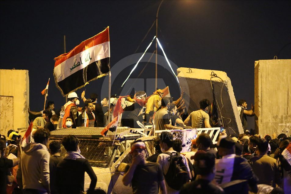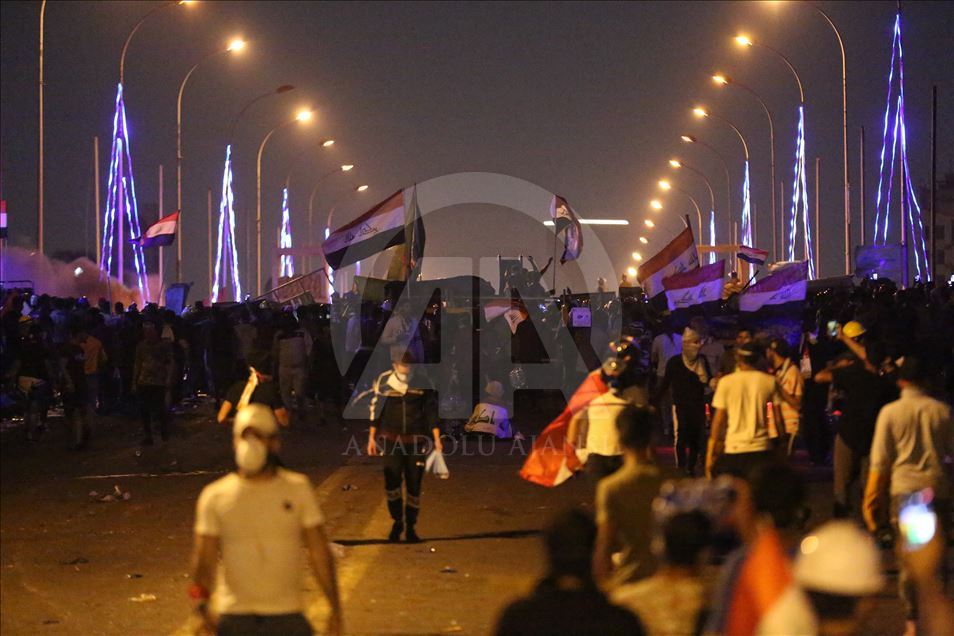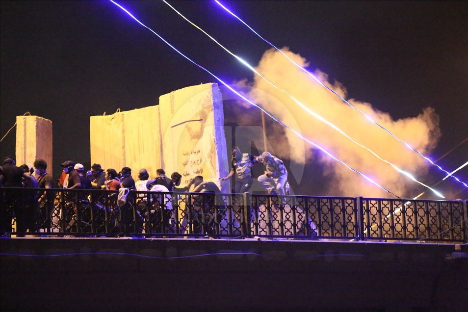 Irak'ın farklı illerinde işsizlik, yolsuzluk ve kamu hizmeti yetersizliği nedeniyle başlayan hükümet karşıtı gösteriler devam ediyor. Göstericiler, başkent Bağdat’taki Sinek Köprüsü’de güvenlik güçleri tarafından kurulan barikatları aşıp Yeşil Bölge’ye ilerlemeye çalıştı. Güvenlik güçleri, göstericilere gaz bombasıyla müdahale etti. ( Murtadha Sudani - Anadolu Ajansı )Murtadha Sudani