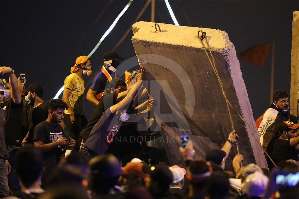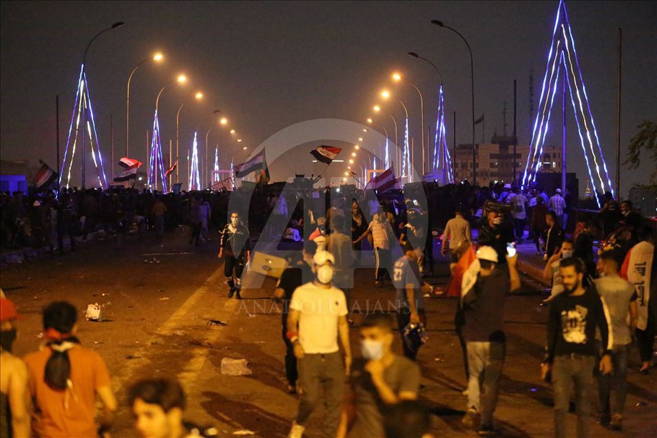 Irak'ın farklı illerinde işsizlik, yolsuzluk ve kamu hizmeti yetersizliği nedeniyle başlayan hükümet karşıtı gösteriler devam ediyor. Göstericiler, başkent Bağdat’taki Sinek Köprüsü’de güvenlik güçleri tarafından kurulan barikatları aşıp Yeşil Bölge’ye ilerlemeye çalıştı. ( Murtadha Sudani - Anadolu Ajansı )Murtadha Sudani