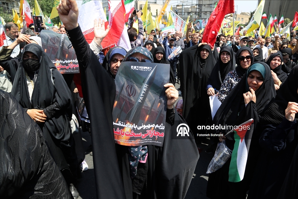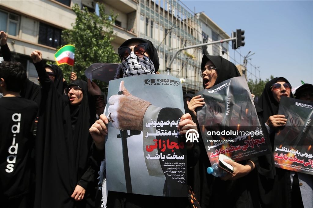 İran’da cuma namazı ardından İsrail'in İran'ın farklı kentlerine düzenlediği saldırılar protesto edildi. Başkent Tahran'daki İnkılap Meydanı'nda düzenlenen gösteride İran bayrağı taşıyan göstericiler, İsrail ve ABD aleyhine sloganlar attı.