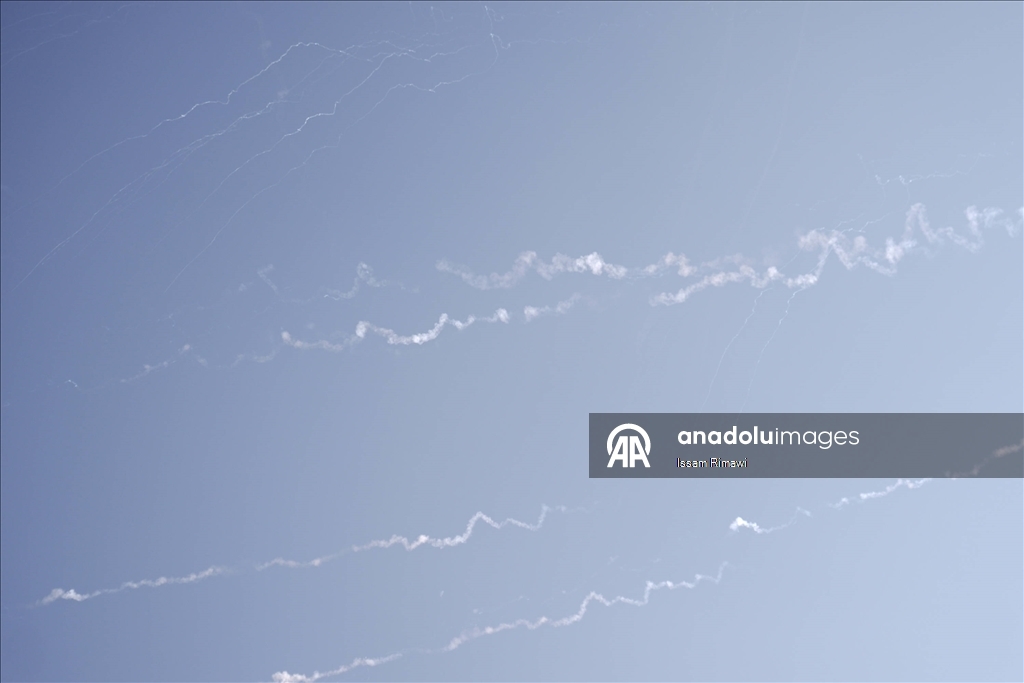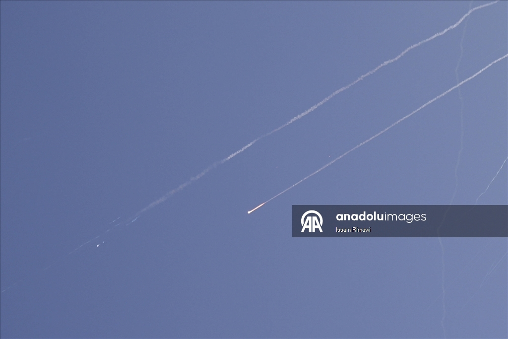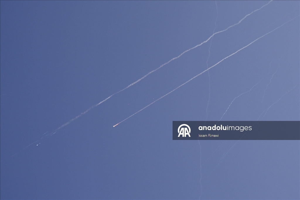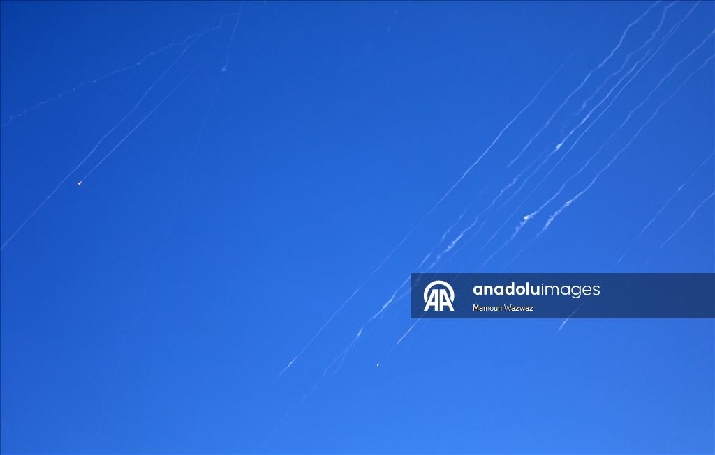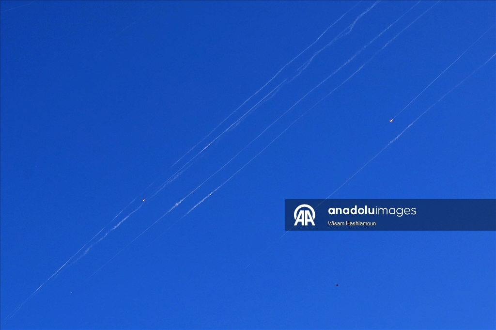 İran'dan ateşlenen füzeler, Batı Şeria'nın El Halil kenti semalarında görüntülendi. (Wisam Hashlamoun - Anadolu Ajansı)Wisam Hashlamoun