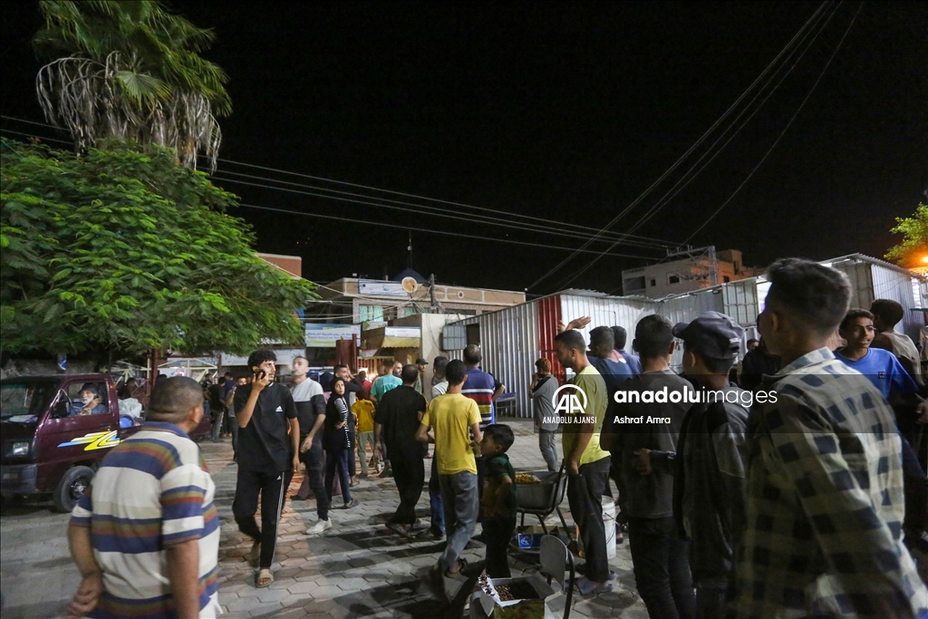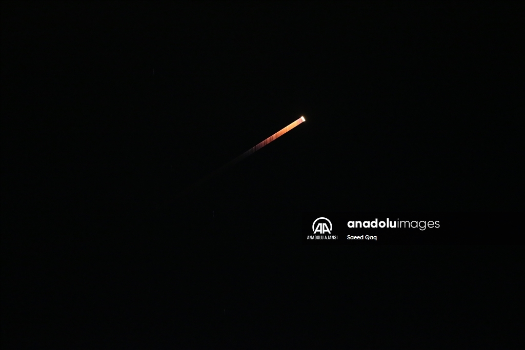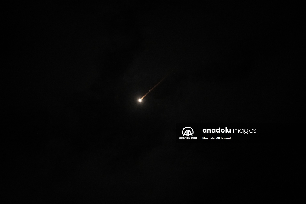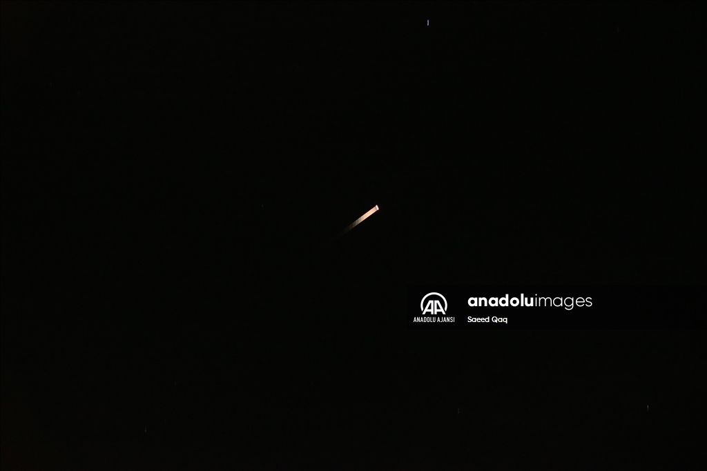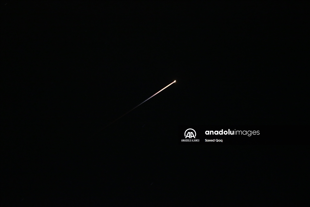 İran'ın İsrail'e yönelik füzelerle başlattığı saldırılar, Gazze Şeridi'nin orta kesiminde yer alan Deyr Belah kentinden görüntülendi. Kentteki Filistinliler, atılan füzeleri izledi. (Ashraf Amra - Anadolu Ajansı)Ashraf Amra