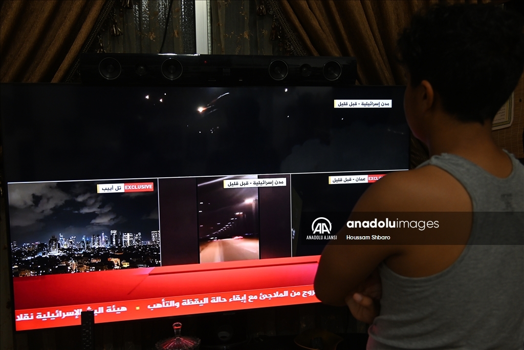 Lübnan'ın başkenti Beyrut'taki Lübnanlılar, İran'ın İsrail'e yönelik füzelerle başlattığı saldırıları ekranlardan takip etti. (Houssam Shbaro - Anadolu Ajansı)Houssam Shbaro