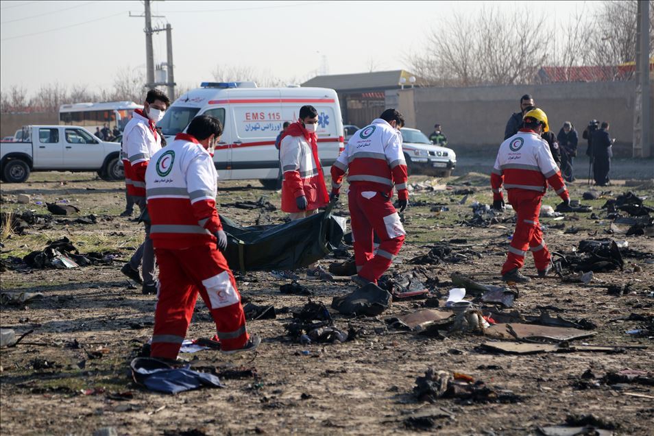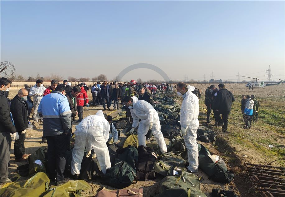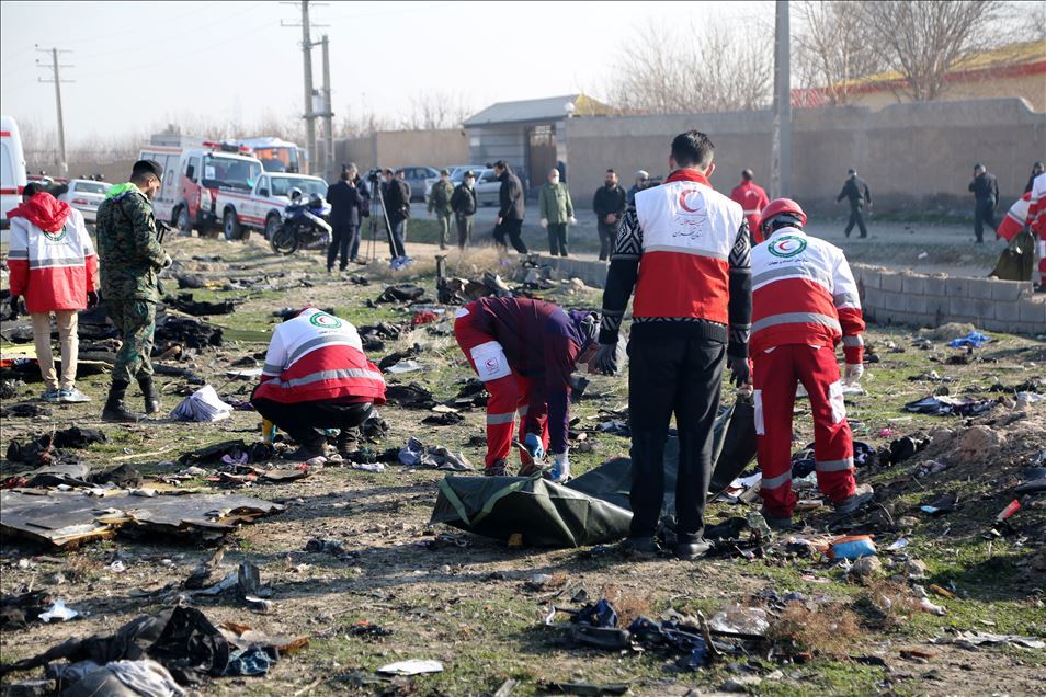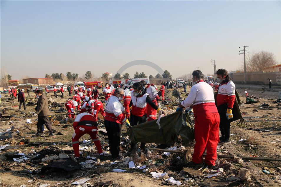 İran'ın başkenti Tahran'da düşen Ukrayna Havayollarına ait Boeing 737 tipi yolcu uçağında bulunan yolcu ve mürettebat 176 kişi hayatını kaybetti. Arama kurtarma ekiplerince, kazada hayatını kaybeden yolcuların cenazeleri taşındı. ( Fatemeh Bahrami - Anadolu Ajansı )Fatemeh Bahrami