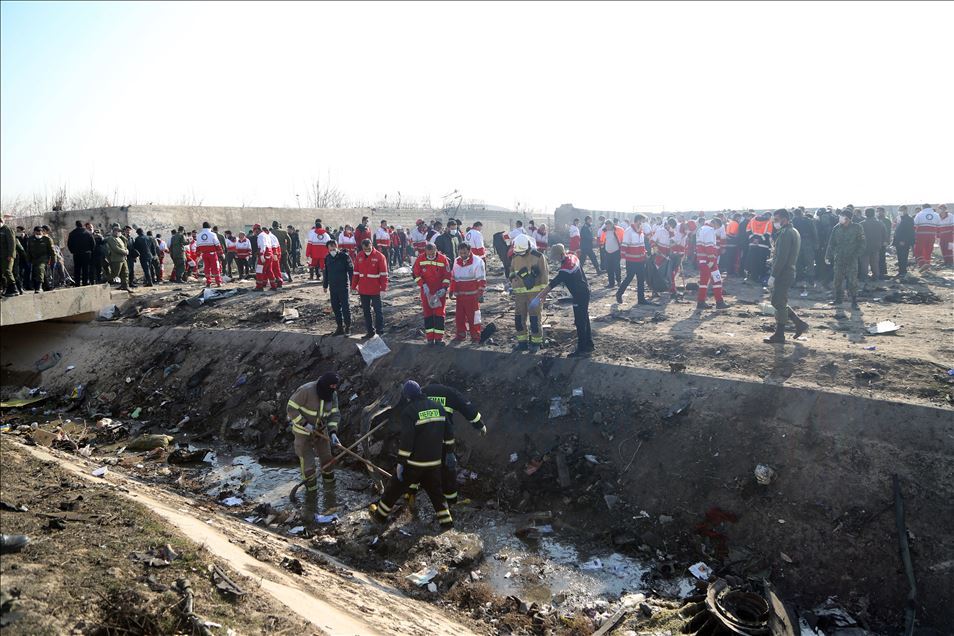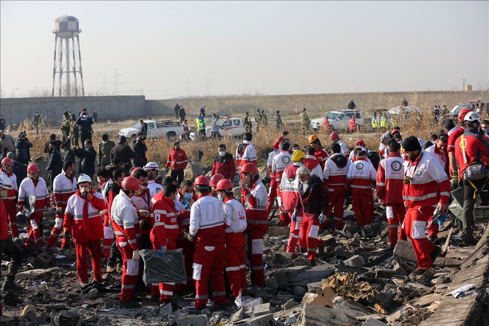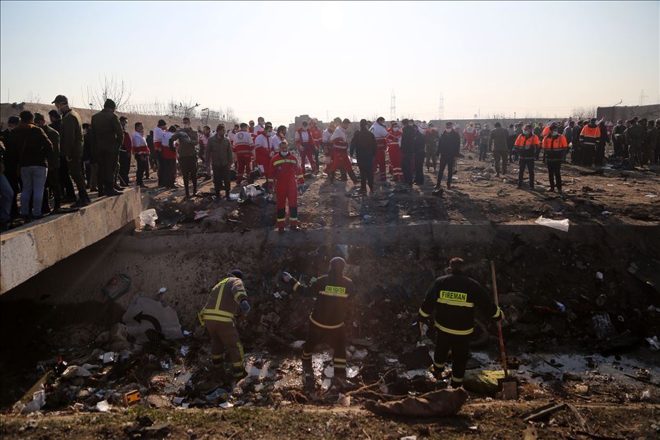 İran'ın başkenti Tahran'da düşen Ukrayna Havayollarına ait Boeing 737 tipi yolcu uçağında bulunan yolcu ve mürettebat 176 kişi hayatını kaybetti. Uçağın düştüğü bölgede arama kurtarma çalışması başlatıldı. ( Fatemeh Bahrami - Anadolu Ajansı )Fatemeh Bahrami